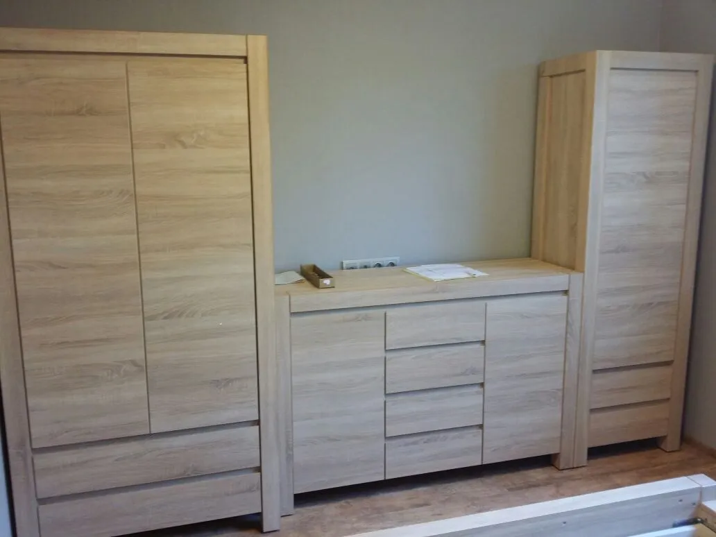 Мебель купили дочке в детскую. Так как на тот момент в нашем городе проходила акция - действовала большая скидка. Купили сразу диван, два шкафа, шкаф навесной, стол, комод и зеркало. Выбирали недорогую, чтобы поменять, когда подрастет. Из плюсов - выглядит очень стильно. Минусы - сборщику пришлось повозиться укрепляя задние стенки шкафов, дно выдвижного ящика в диване и направлчющие во всех ящиках комода. Сборщик опытный, поэтому такие моменты знал заранее. Остальное очень даже неплохо. Писменный стол не царапается, кромка не отходит. На комоде у дочки стоит моя косметика, часто на поверхность попадает лак для волос или косметическое масло и ничего, все ОК. Еще удобно, что диванные чехлы легко снимаются и стираются в обычном режиме, не теряя форму. Стирали уже два раза. После двух лет эксплуатации могу рекомендовать как бюджетный и стильный вариант детской.