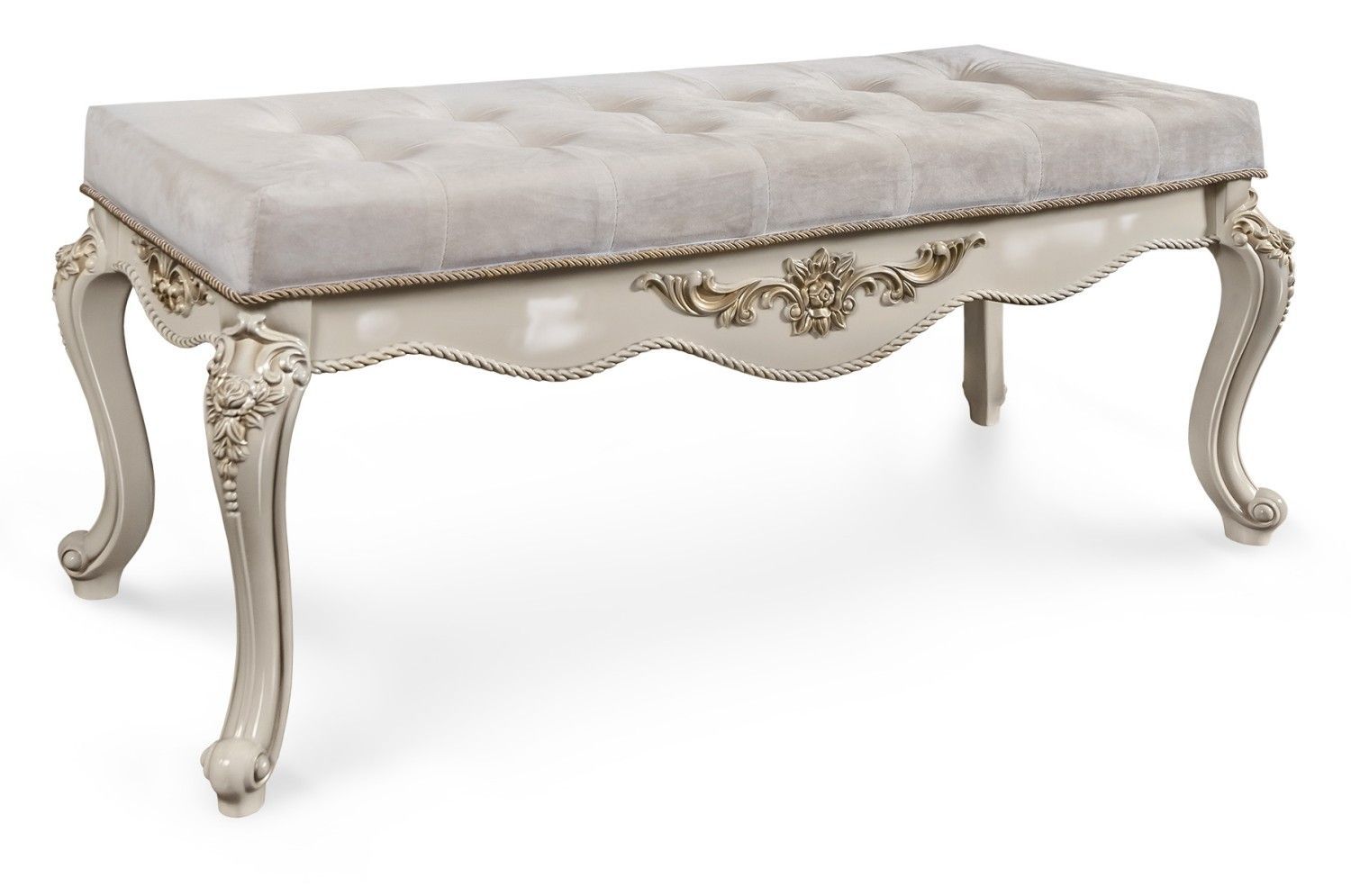 Прикроватная банкетка «Джоконда» ‑ лучшее решение для классического барокко. Она изящна и самодостаточна, имеет объемную форму и фигурные ножки с элементами лепнины. Если раньше такую мебель использовали на светских балах и в будуарах, то сегодня ее устанавливают в спальнях и залах у подножья кровати, рядом с туалетным столиком или диваном.
