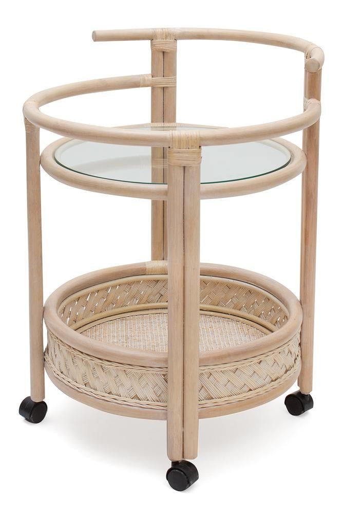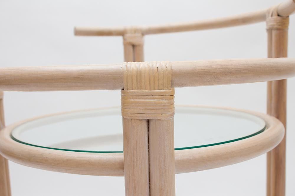 Интересный и продуманный дизайн барного столика из французской коллекции ANDREA позволит привлечь внимание и сделать яркий акцент на определенной зоне в интерьере. Это не только стильное, но и удобное решение. Столик украсит помещение, сделает ваш интерьер особенным и продуманным до мелочей. Круглая столешница из закаленного стекла и удобная нижняя полочка - отличное место для хранения вашей коллекции напитков и барных аксессуаров, надежные бортики защитят предметы от падения. Широкая ручка и колесики, вращающиеся в любом направлении, позволяют легко и быстро переместить столик при необходимости. Модель можно использовать не только по прямому назначению, но и как дополнительную сервировочную поверхность, либо как столик в гостиную для хранения под рукой всего самого необходимого. Каркас из натурального ротанга высочайшего качества изготовлен вручную с использованием нескольких видов традиционного индонезийского плетения. Натуральный ротанг, покрытый матовым лаком, устойчивым к УФ-излучению, прочен, долговечен, способен выдерживать большую нагрузку, и будет радовать вас своим первоначальным видом долгие годы. Модель идеально сочетается с мебелью из коллекции ANDREA, поставляется в собранном виде. Страна-производитель: Индонезия