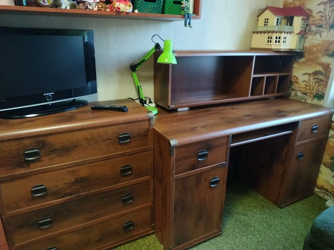 Сыну исполнилось 11 лет. Решили с мужем выделить ему комнату. Не стали покупать, что то детское, так как вырастит а потом опять ремонт делать. Но тем не менее сын выбирал мебель сам. Ему понравился цвет, а нам с мужем практичность и дизайн.