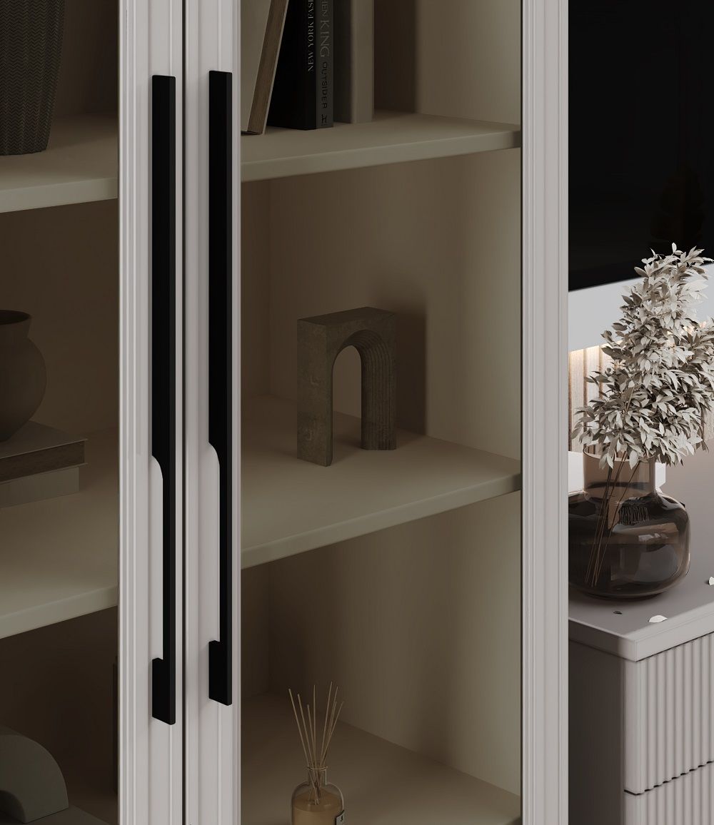 Завершают коллекцию вместительные шкафы "Стелла" которые представлены в 2х размерах — 4х и 6ти дверный. Складной механизм фасадов экономит место, плавная эргономичная форма ручки рейлинга позволяет удобно пользоваться шкафом, стандартное внутреннее наполнение с 2мя функциональными комодами, полками и штангой сохранят ваши вещи в порядке .