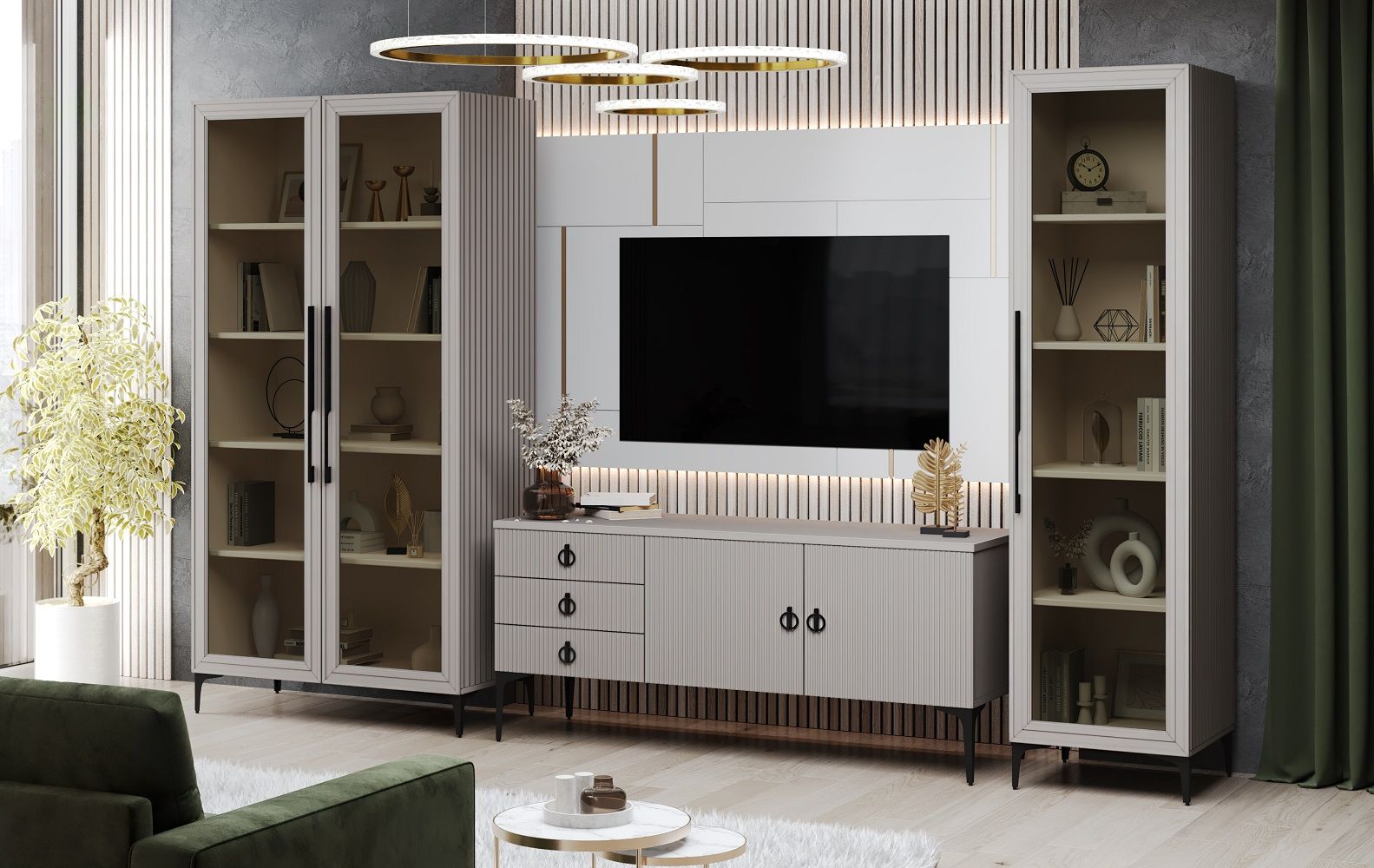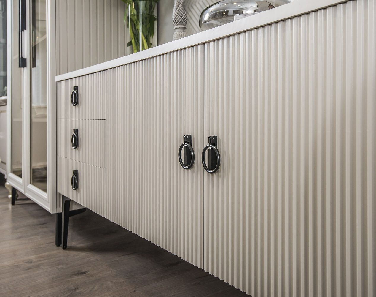 Каждая деталь спальни тщательно продумана, чтобы подарить вам не только максимальный комфорт и эстетическое удовольствие, но и уверенность в высоком качестве мебели. Корпуса и столешницы модулей выполнены из ламинированной древесной плиты европейского качества, Фасады из природного МДФ задекорированы рельефной фрезеровкой и авторский стиль фабрики ЭРА — это финишное покрытие матовая итальянская эмаль ярко серого цвета.
