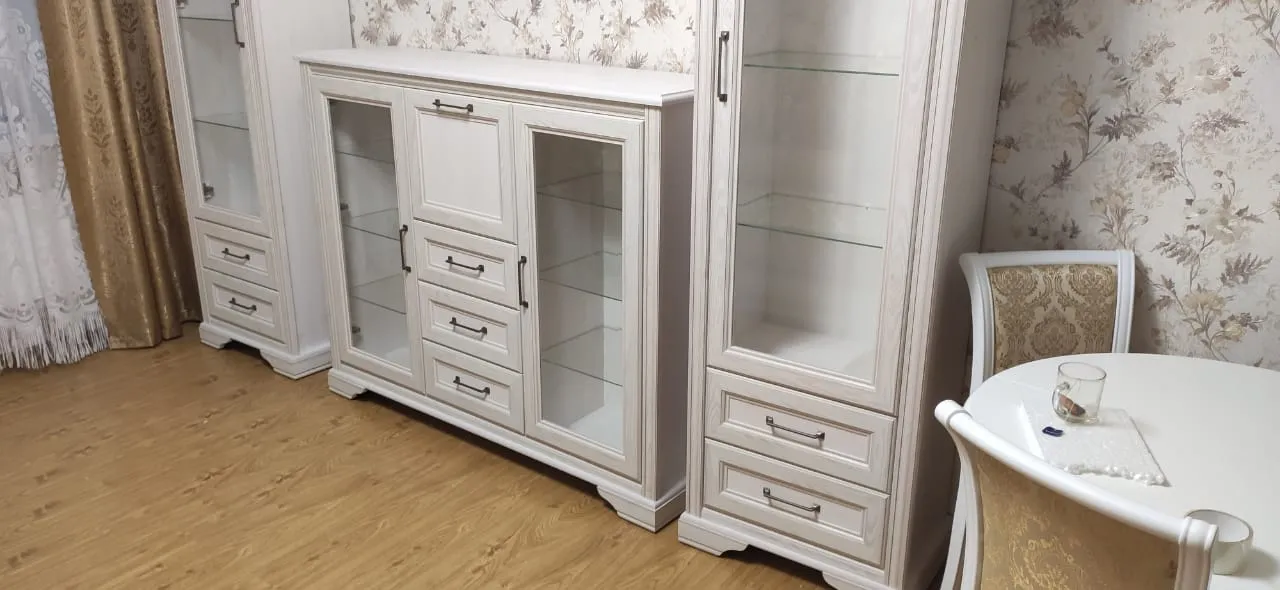 Огромное спасибо, что подсказали выбрать этот комплект. Было несколько вариантов, но выбрали этот из-за стола и дизайна. В мебели для гостиных, которую видели, либо шкафы и комоды, либо витрины и комоды, и сложно найти с письменным столом.