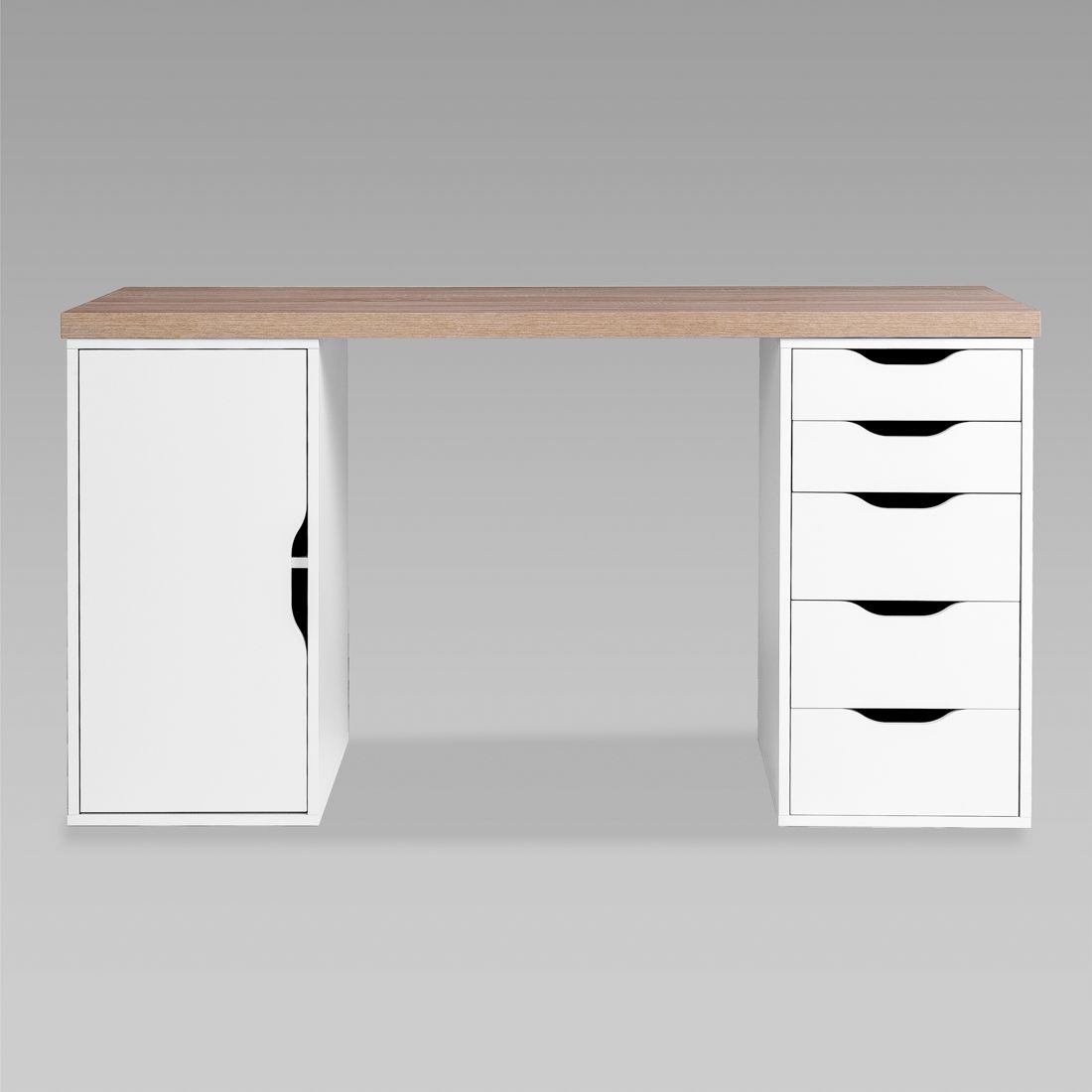 ИНГАР 2/5/ДВ стол письменный 140x75x55, дуб беленый/белый