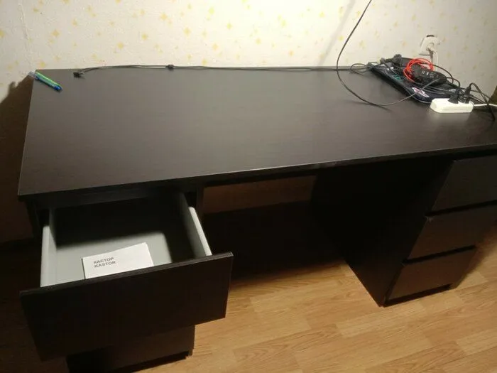 Отличный стол!. Отличный стол! Купили на замену Икее. Хорошая упаковка, легкая сборка, качественная столешница. Я очень довольна. Единственное, что меня огорчило, теперь не прикрутить к столу настольную лампу икеа, не хватает свободного края у столешницы.