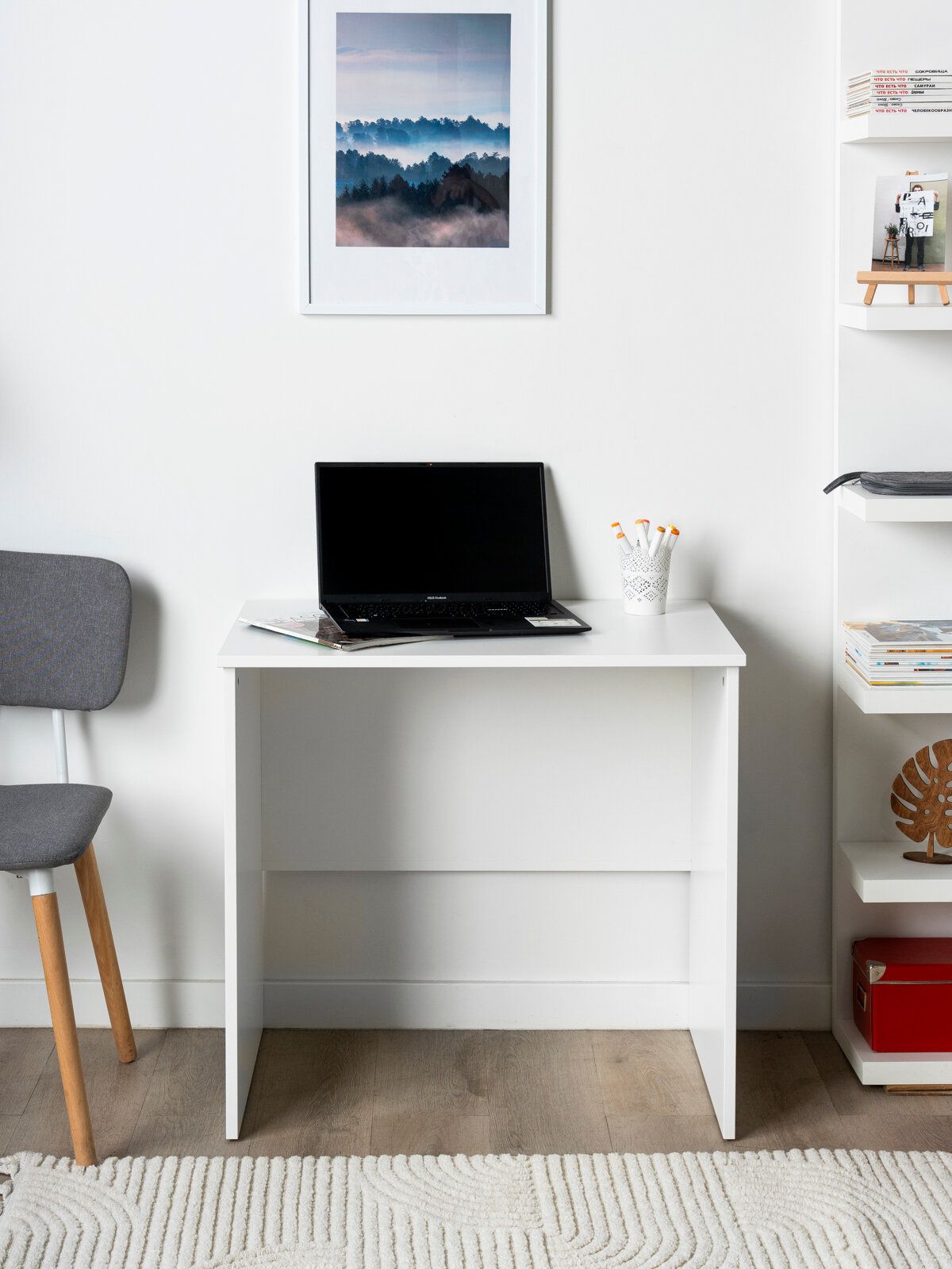 Красивый, аккуратный. Детям для уроков в детскую вообще то что нужно. Если два ученика, можно и пару таких в комнату ставить, чтобы не спорили. Так как места занимает мало.. Собрали быстро. Отлично вписался в интерьер. Цена вообще огонь.