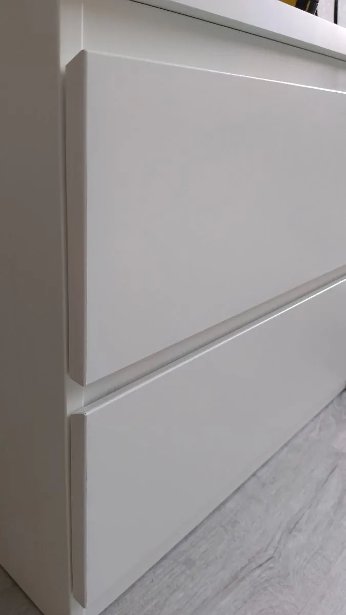 Доставили прям до квартиры. Если доставку до квартиры оформить через подтверждение заказа, выйдет дешевле;) тумба очень хорошего качества. Толщина столешницы 20мм. Фасад полок имеет скос, что тоже придает шарм тумбе. Направляющие хорошие, хоть и не имеют доводчика и не полного выдвижения, но ездят довольно тихо. Открывать приятно. Гладкое матовое покрытие. Муж после собирал стол, другого производителя (Кайт) говорит, что тумба намного лучше. И собирать просто и по качеству. Отлично. К покупке рекомендую!!! Есть небольшой зазор при закрытых полках, может кому это сильно важно. Но если прям вплотную сверху не смотреть, то не заметно (на фото прилагаю) У других поставщиков эта же тумба стоит дороже. Но это та же самая. Так что берите смело.