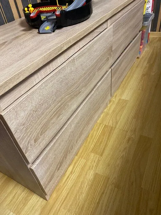 Очень качественно сделано. В целом за эти деньги все достойно, очень хорошо упаковано. Четкая инструкция. Фасады обклеены пленкой вкруговую. Низ и задняя часть полки не закрыта кромкой. Необычная сборка ящиков. Смотрится достойно. Упаковка отличная, углы и бока защищены, пришло в двух коробках 1 полка. Заказывала 2 штуки, обе одинаково хороши. Цвет и тон изделий совпадает . При закрытии ящиков остаётся щель