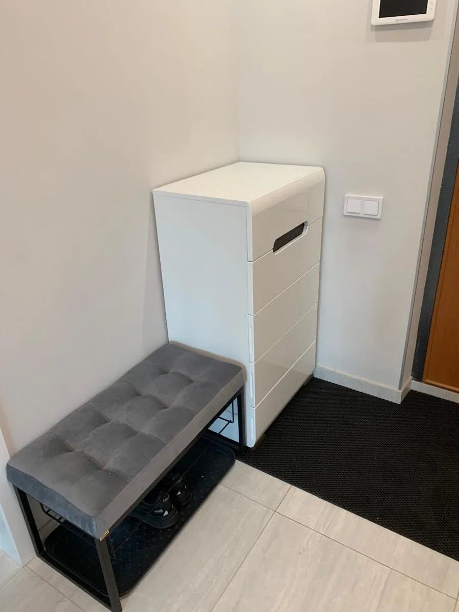 Комодом очень довольны. Качественный, хороший. Фурнитура отличная. Открывается не нажатием, сбоку маленький впадинки-ручки. В меру глянцевый. Доставка отличная, все вежливо и приятно.