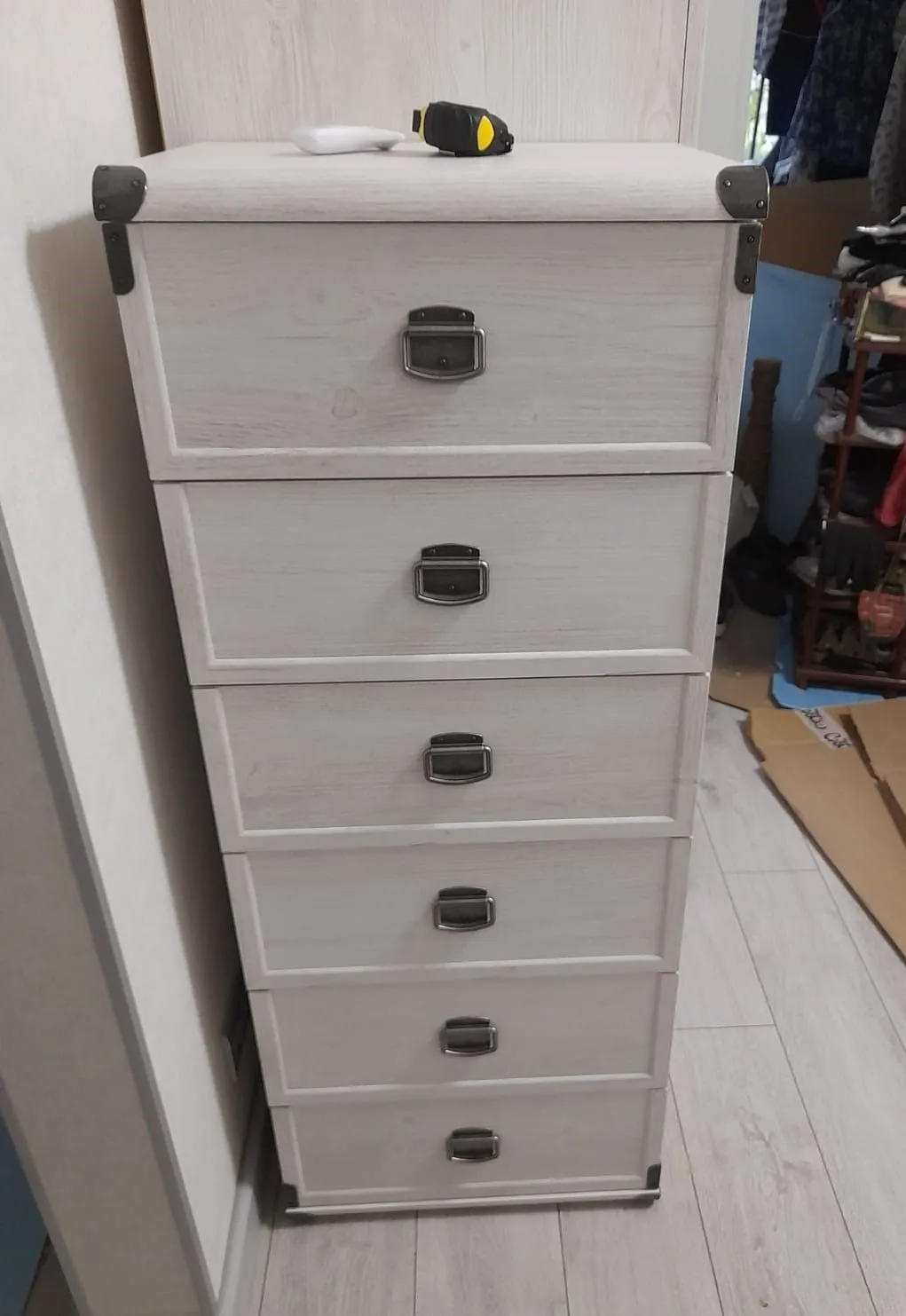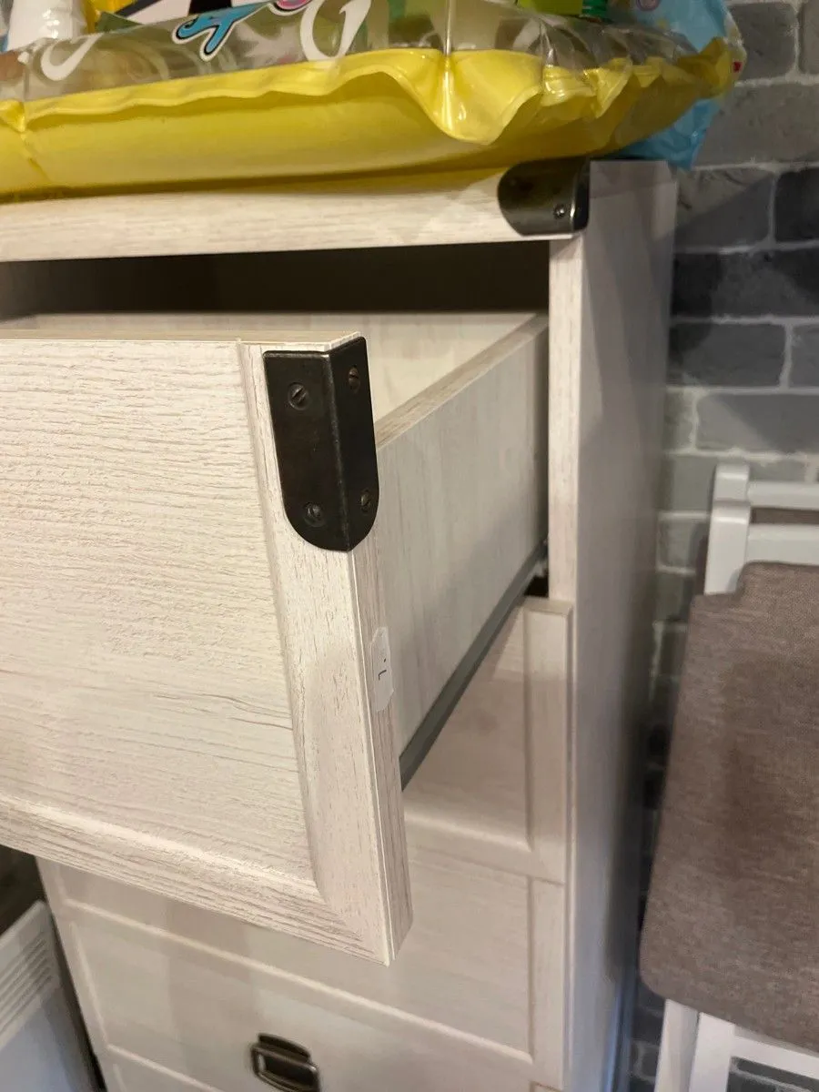 Супер комод!очень хорошего качества,уголки с металлическими накладками, хорошие металлические ручки понятная инструкция!рекомендую!