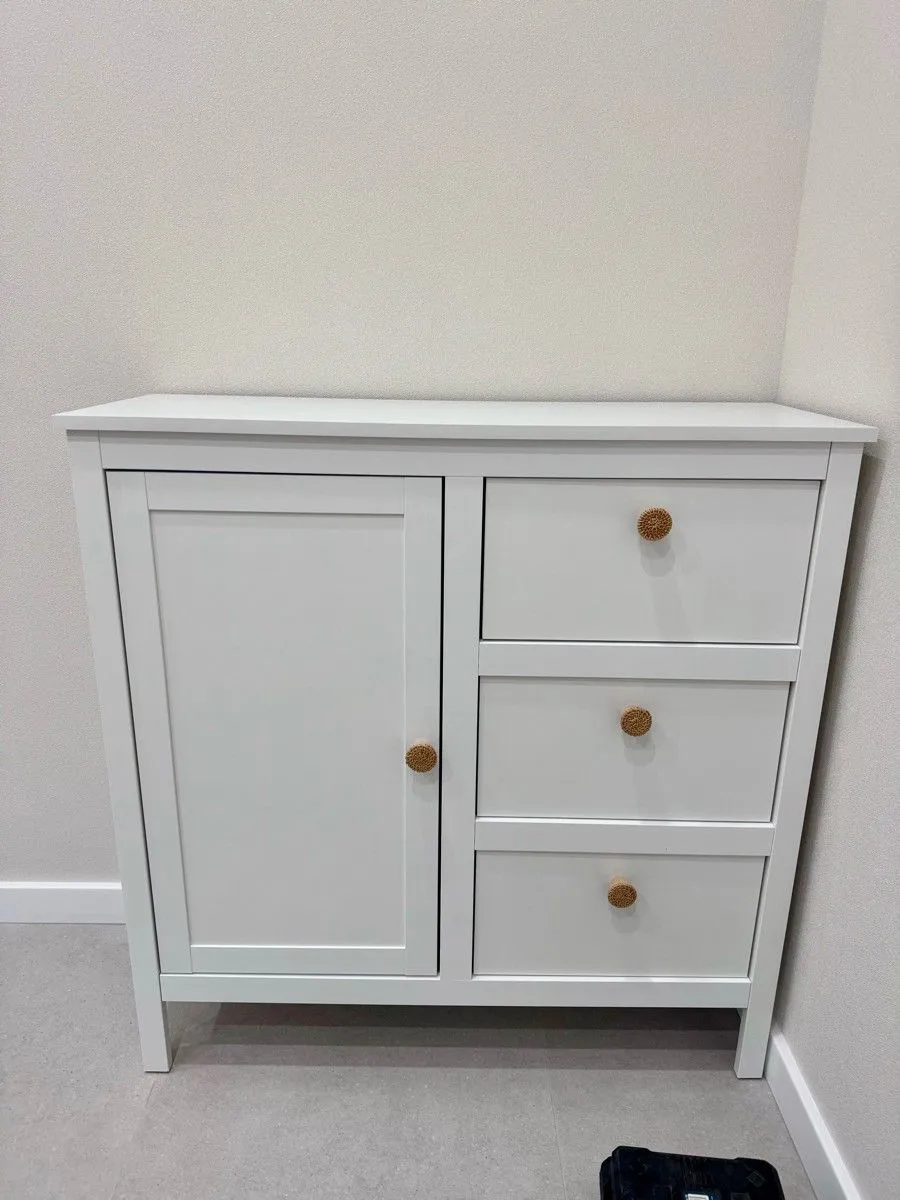 Хороший, не большой комод. Покупали серию в гостиную. Собрали быстро, по инструкции. Ручки полностью заменили