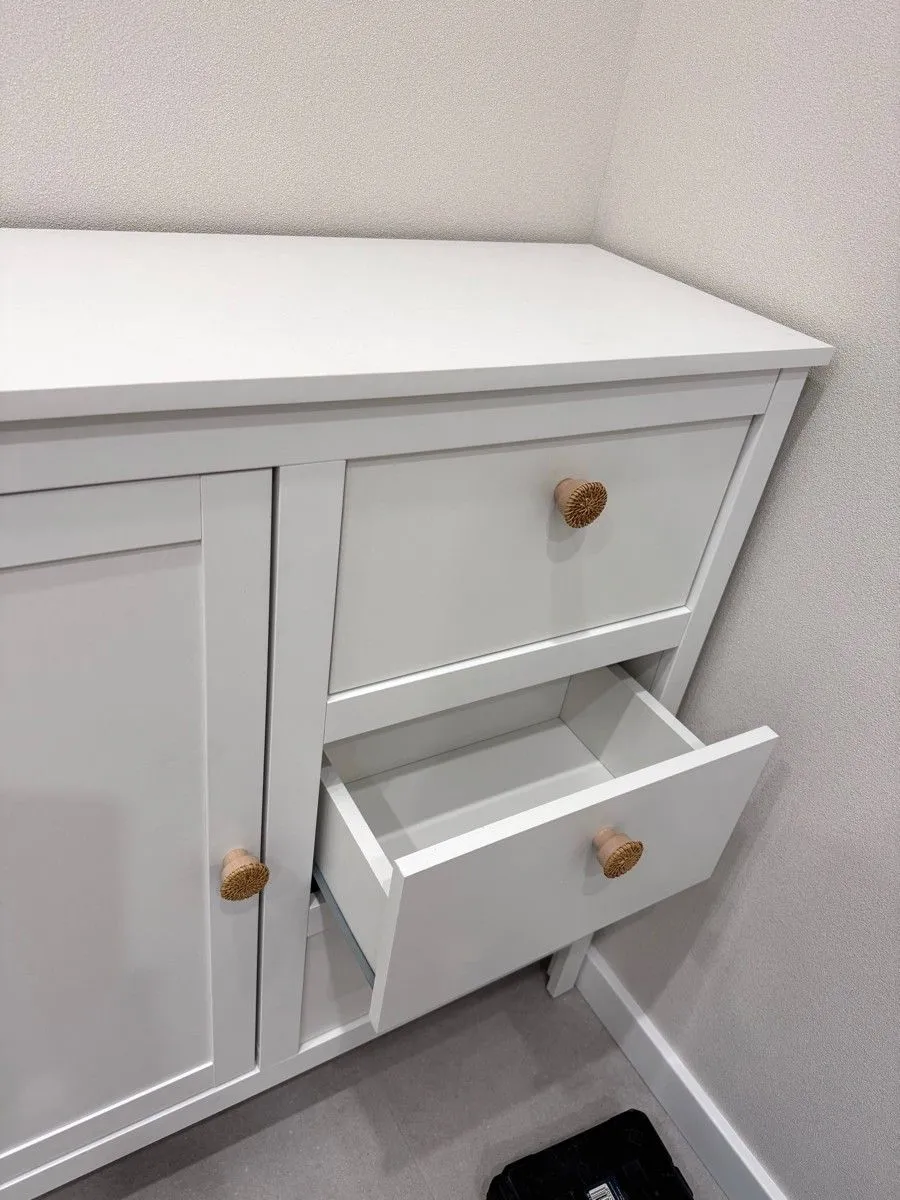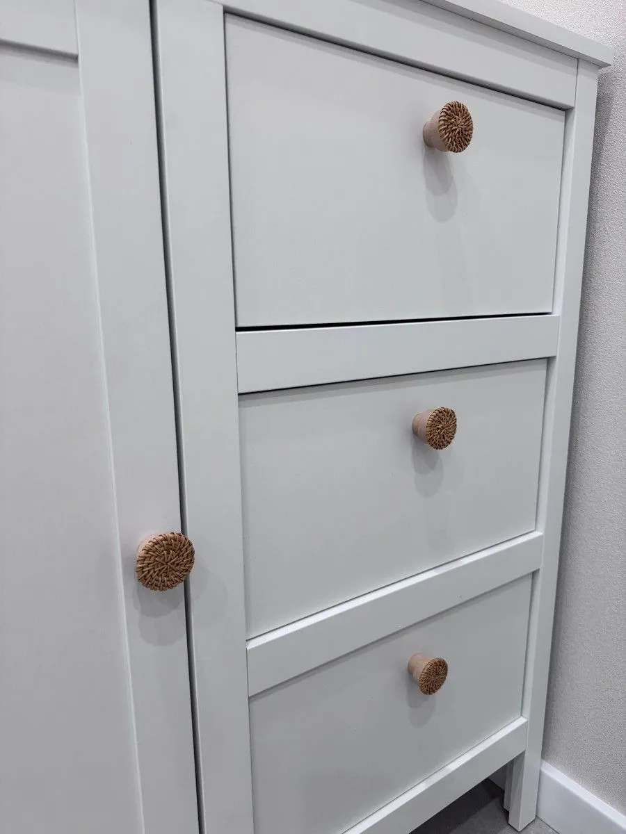 Комод понравился. Для гостевой комнаты - цена/качество. Выкатные ящики не глубокие . Ручки заменила на ручки из ротанга , купленные на Озон. С ними смотрится интереснее .