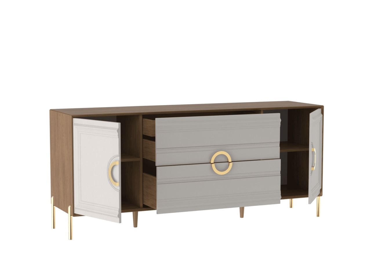 Комод широкий, Палермо (1824*472*782) Дуб Каселла коричневый/Экокожа Мокко, 12807
