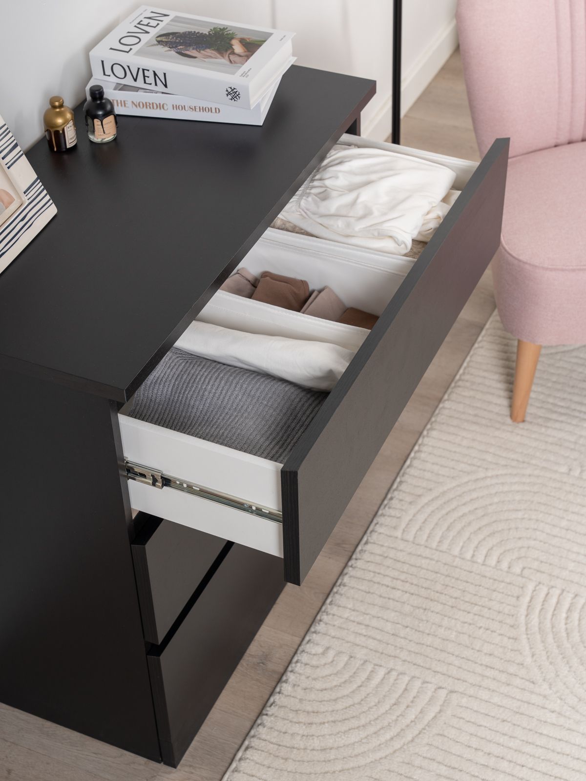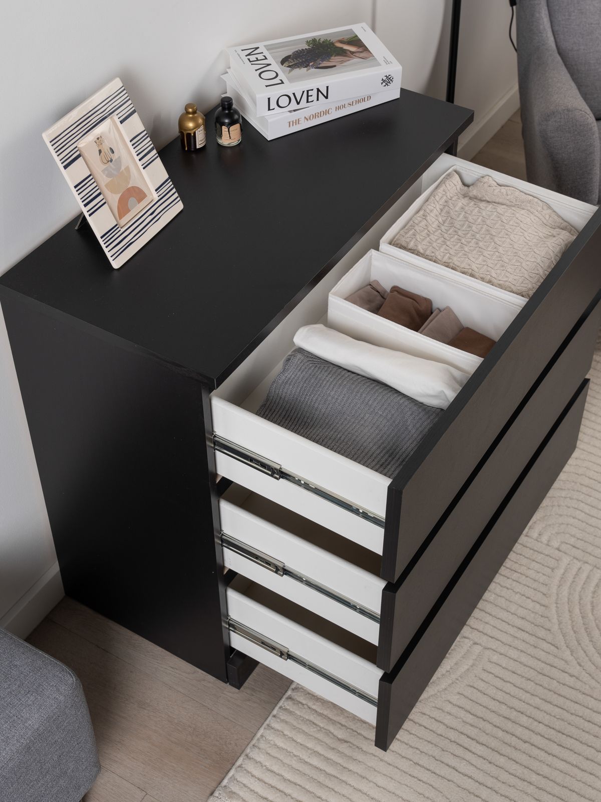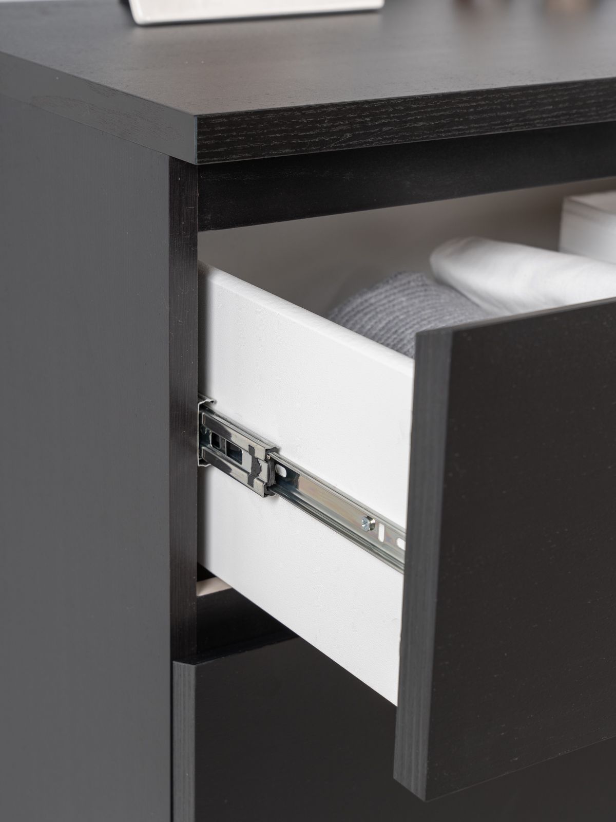 Ящики отлично работают, выглядит комод достойно, цвет венге. Рекомендую к покупке. Сверху покрыли стеклом самостоятельно.