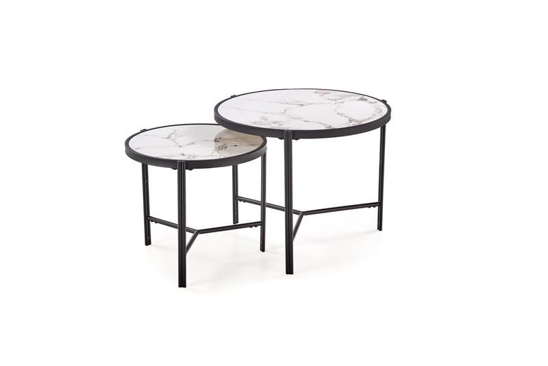 Комплект Halmar FATIMA (2 стола журнальных) (белый мрамор/черный)