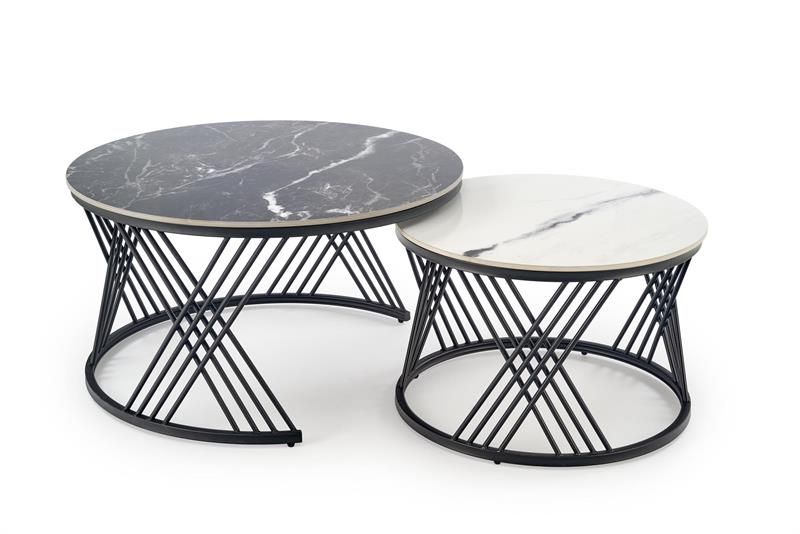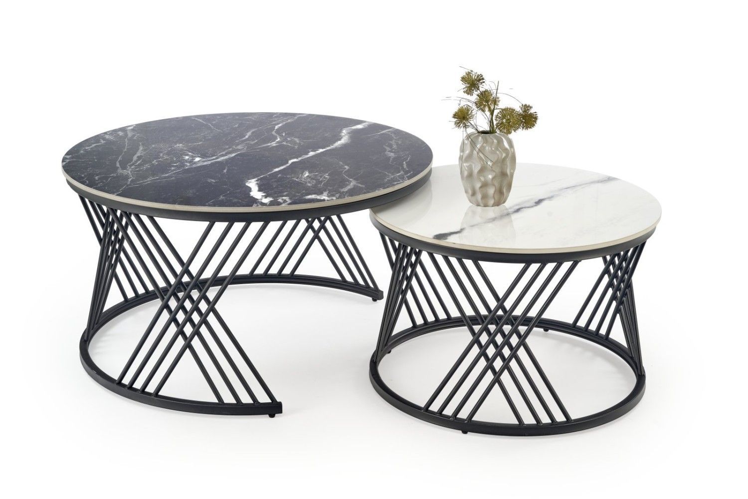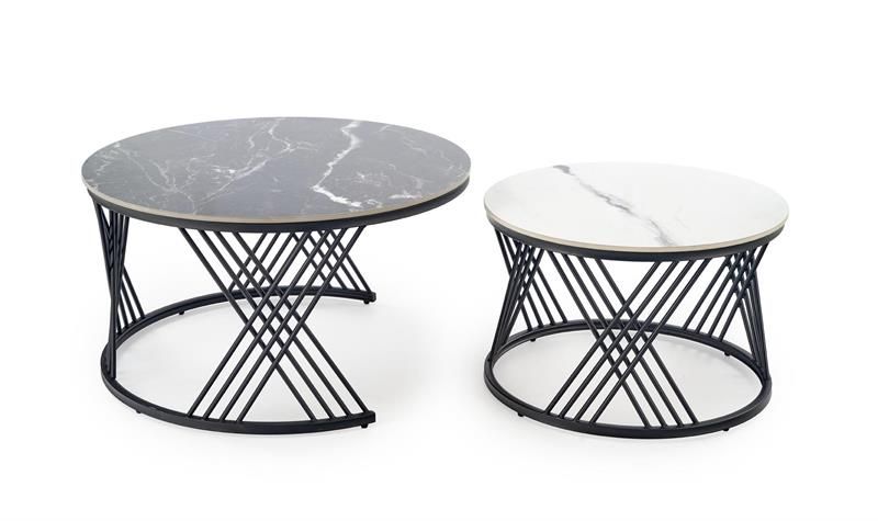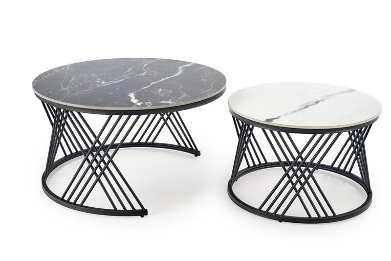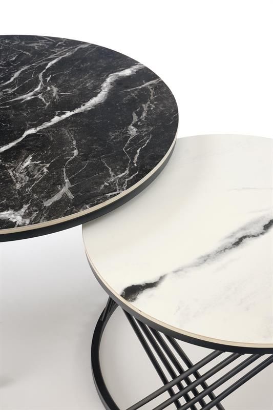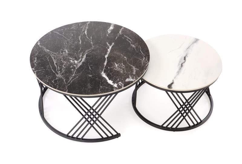 Комплект Halmar FLAMINGO (2 стола журнальных) (черный мрамор/белый мрамор/черный)