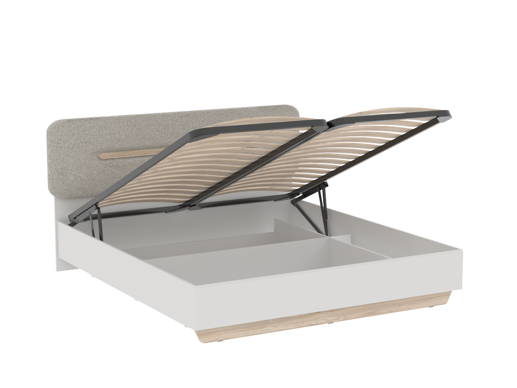 Кровать оснащена коробом для белья с подъёмным механизмом.