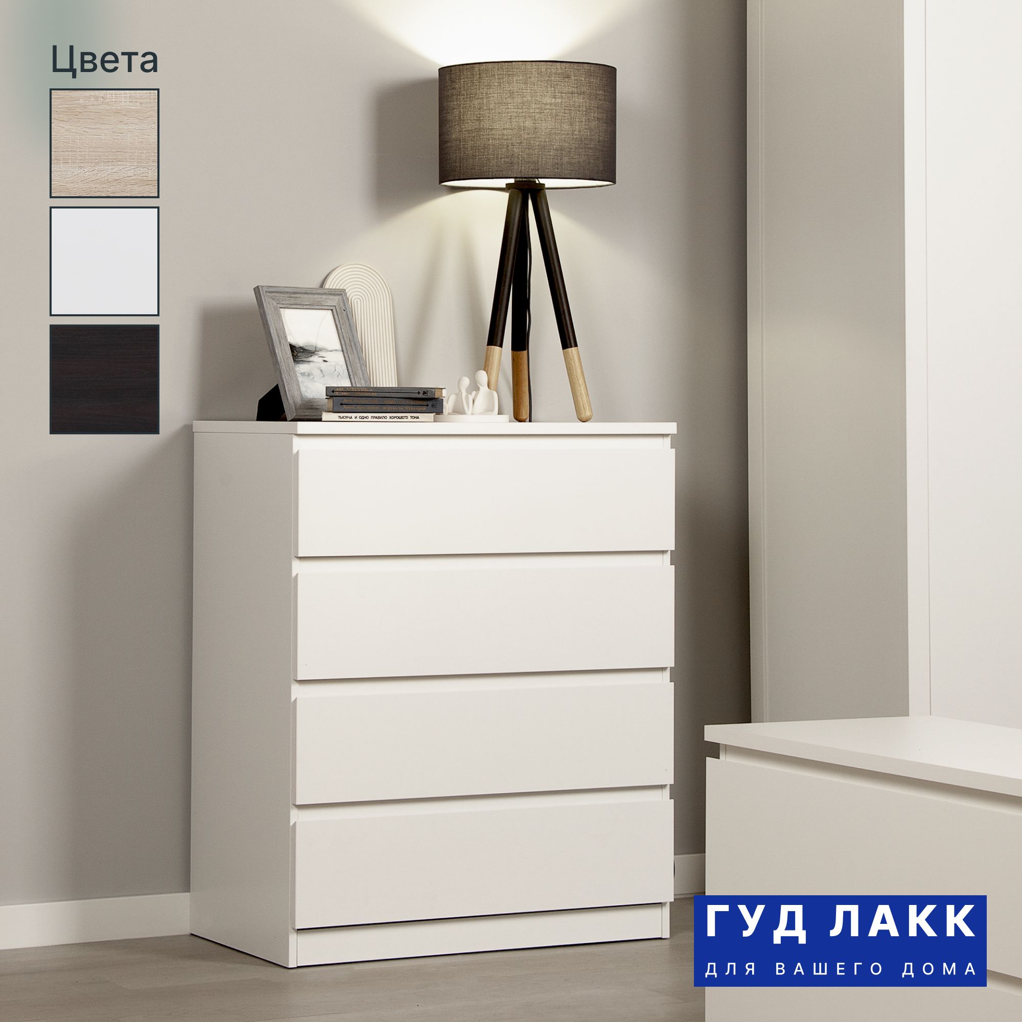 Комод Мальта, 4 ящика, с доводчиками, 80х48х98 см, белый