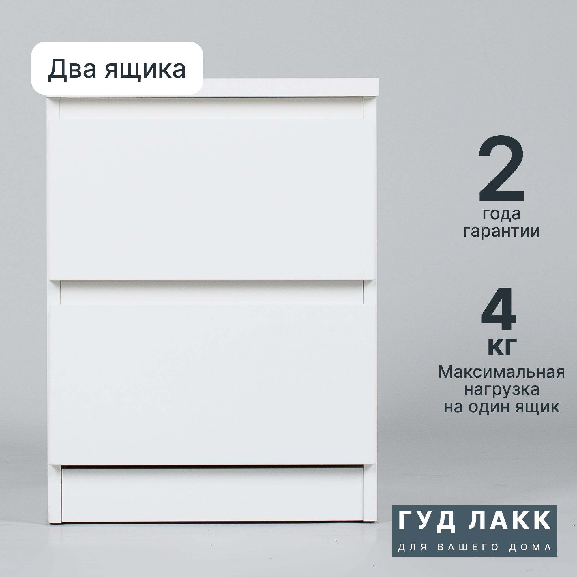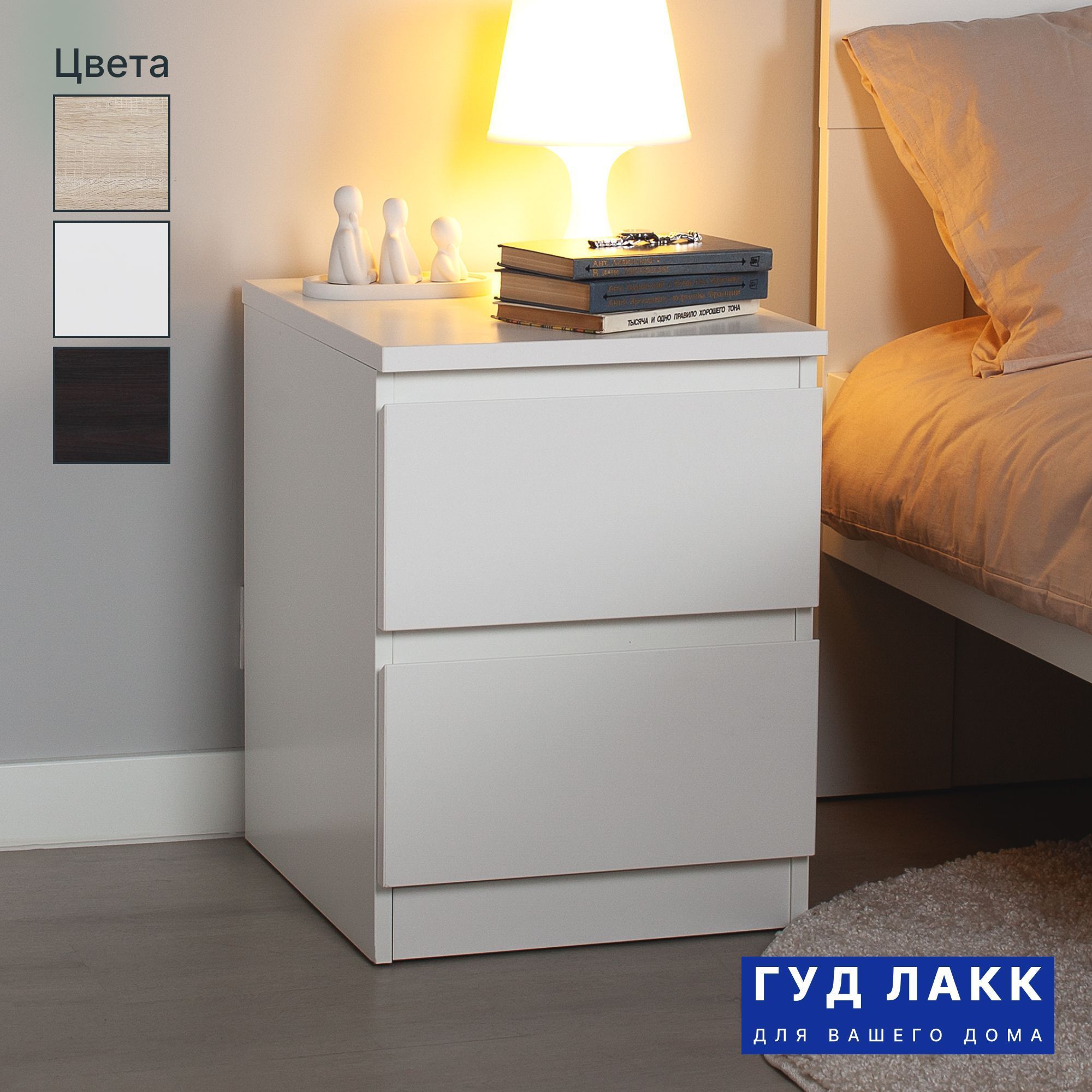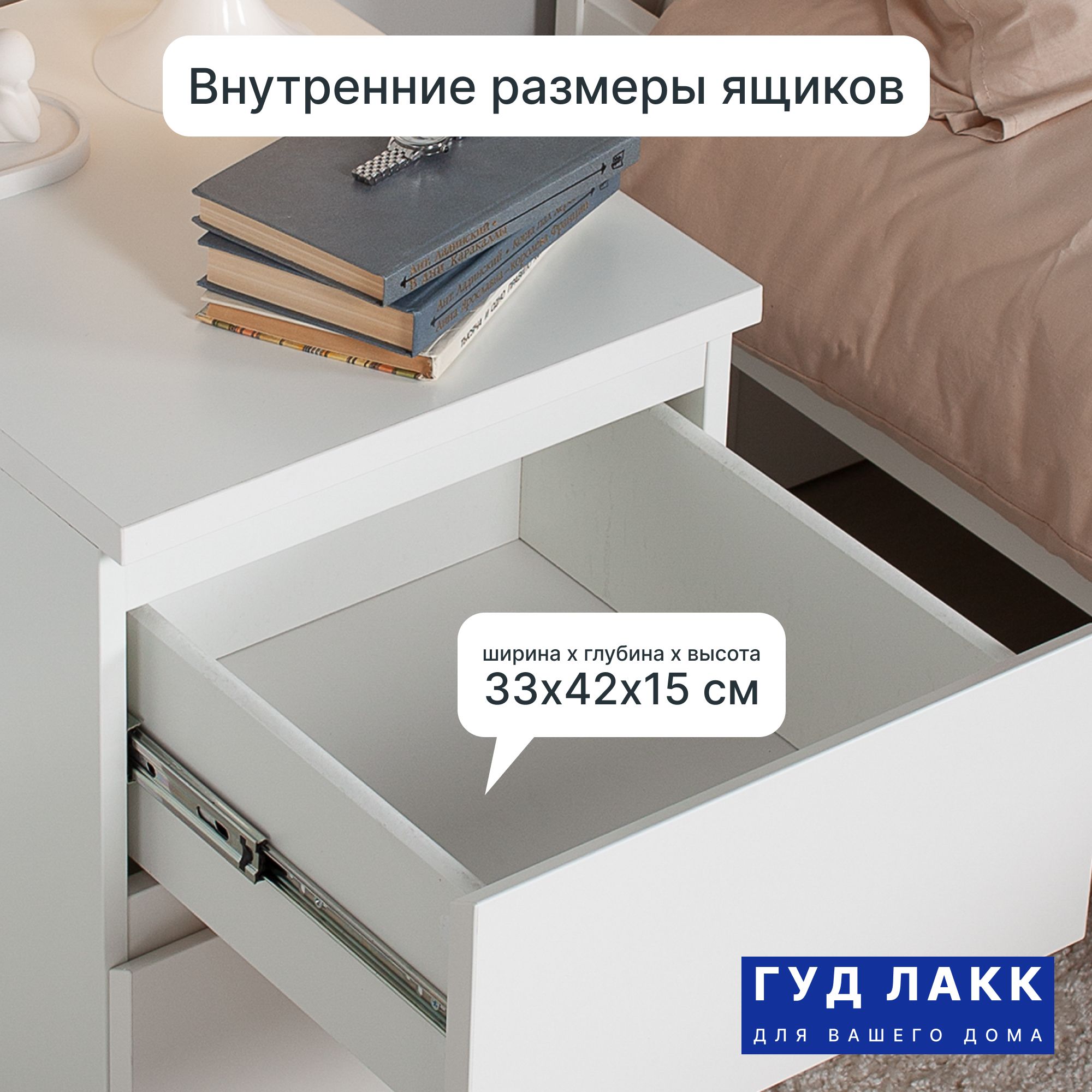 ГУД ЛАКК - знакомая мебель, которую легко купить и собрать! Прикроватная тумба МАЛЬТА - минимализм и функциональность в каждой детали! Серия комодов и тумб МАЛЬТА вдохновлена популярной серией MALM от IKEA, и станет идеальным дополнением вашей спальни. Ее лаконичный дизайн гармонично впишется в любой интерьер, а компактные размеры не займут много места. Почему выбирают тумбу МАЛЬТА? Тумба МАЛЬТА — это прекрасное решение для прикроватного хранения. На столешнице можно разместить светильник для чтения, кружку кофе или поставить телефон на зарядку, а в двух вместительных выдвижных ящиках спрятать все то, что необходимо – положить планшет, книгу и массу необходимых мелочей. Ну и конечно, небольшая, но вместительная и стильная тумба пригодится абсолютно везде). УЗНАВАЕМЫЙ ДИЗАЙН В СТИЛЕ СКАНДИНАВСКОГО МИНИМАЛИЗМА. Дизайн без ручек делает тумбу более лаконичной и визуально легкой, а поверхность выглядит цельной и гармоничной, что создает ощущение порядка и чистоты. ВМЕСТИТЕЛЬНЫЕ ЯЩИКИ. Здесь удобно хранить книги, гаджеты и аксессуары для них, украшения, или мелочи, и многое другое, что обязательно должно быть у Вас под рукой. Тумба МАЛЬТА – это маленькая Нарния). ПЛАВНОЕ ЗАКРЫВАНИЕ И ПОЛНЫЙ ДОСТУП. Доводчики обеспечивают плавное и тихое закрывание ящиков. Направляющие полного выдвижения позволяют выдвигать ящик целиком, предоставляя полный доступ к его содержимому, упрощая поиск вещей и организацию внутреннего пространства ящика. ЭКОЛОГИЧНОСТЬ. Наша мебель производится на заводе полного цикла по принципу «от древесины до готового изделия». При этом применяются максимально жесткие требования к экологичности на уровне, установленном для детской мебели. КАЧЕСТВО НА УРОВНЕ IKEA. Тумба МАЛЬТА изготовлена на сертифицированной фабрике в Беларуси, которая ранее производила мебель для шведского бренда. Кстати, в том числе поэтому наш ассортимент прекрасно сочетается с мебелью ИКЕА, которая, возможно, есть у Вас дома. Сочетается как по дизайну, так и за счет совпадения цветовой гаммы. ЛЕГКОСТЬ СБОРКИ. Вы можете сами легко и быстро собрать нашу мебель, что позволит сэкономить и время на ожидание сборщика, и деньги на оплату его услуг. А поможет в этом не только высокое качество изготовленной мебели, но и понятная пошаговая инструкция. Кстати, если вы вдруг потеряли инструкцию, ее всегда можно скачать здесь, в карточке товара. НАДЕЖНОСТЬ. Несмотря на то, что гарантийный срок на мебель по закону составляет 24 месяца, реальный срок службы нашей мебели составляет до 20 лет. Уж поверьте, сменить обстановку вы решите гораздо раньше, чем выйдет из строя наша мебель. Мы хорошо знаем жизненный путь нашей мебели. Из Вашей квартиры она переедет на квартиру к детям, потом к внукам, потом на дачу, с дачи – на гараж, а потом, если захотите – вы сможете ее продать! КАЧЕСТВЕННАЯ ПЛОСКАЯ УПАКОВКА. Детали в упаковке уложены максимально плотно, с использованием демпфирующих материалов. Это позволяет максимально снизить риск повреждения при транспортировке. Однако обращаем внимание, что даже самая лучшая упаковка не гарантирует отсутствие повреждений при грубом обращении с товаром в процессе доставки. Но для таких случаев у нас работает сервисная служба, которая всегда готова бесплатно заменить поврежденные элементы (работает ежедневно с 08:00 до 20:00 МСК). ВЫСОК