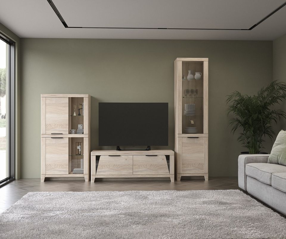 Пенал низкий со стеклом, Юта (802*373*1476) Дуб Мария, 31707