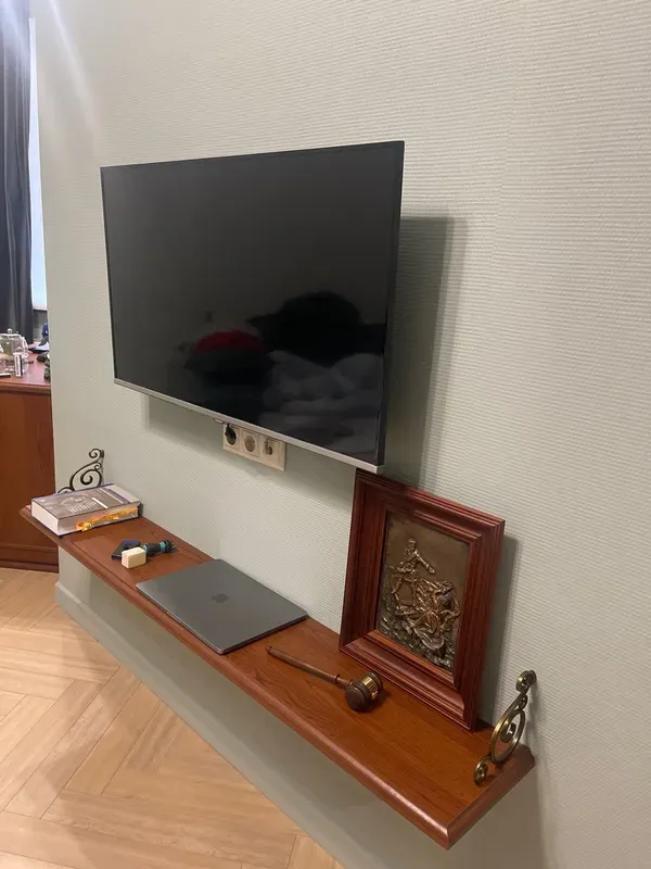 Полку покупали к мебели из этой же серии. Смотрится очень красиво, крепится легко. Все замечательно , покупкой довольны, спасибо.