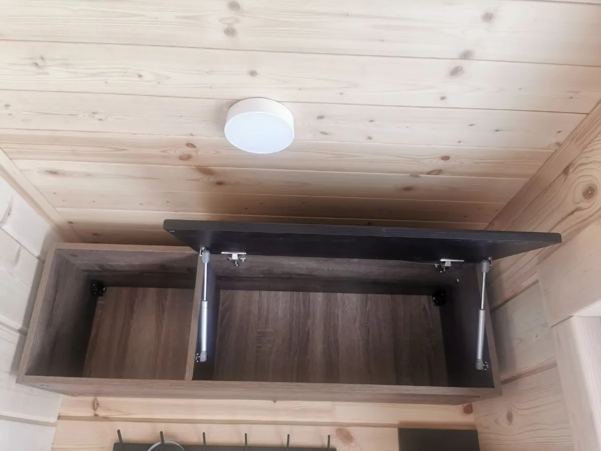 Навесная полка имеет каркас в цвете монастырского дуба и декорирована стильной черной дверцей. Она подходит современным интерьерам в стиле лофт, минимализм и хай-тек. Это практичное решение для тех, кто хочет сэкономить площадь и приобрести вместительную систему хранения с неограниченными дизайнерскими возможностями.