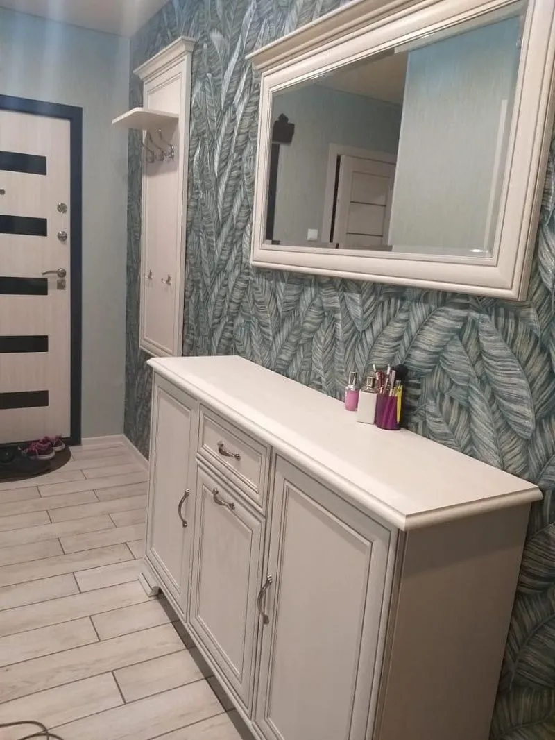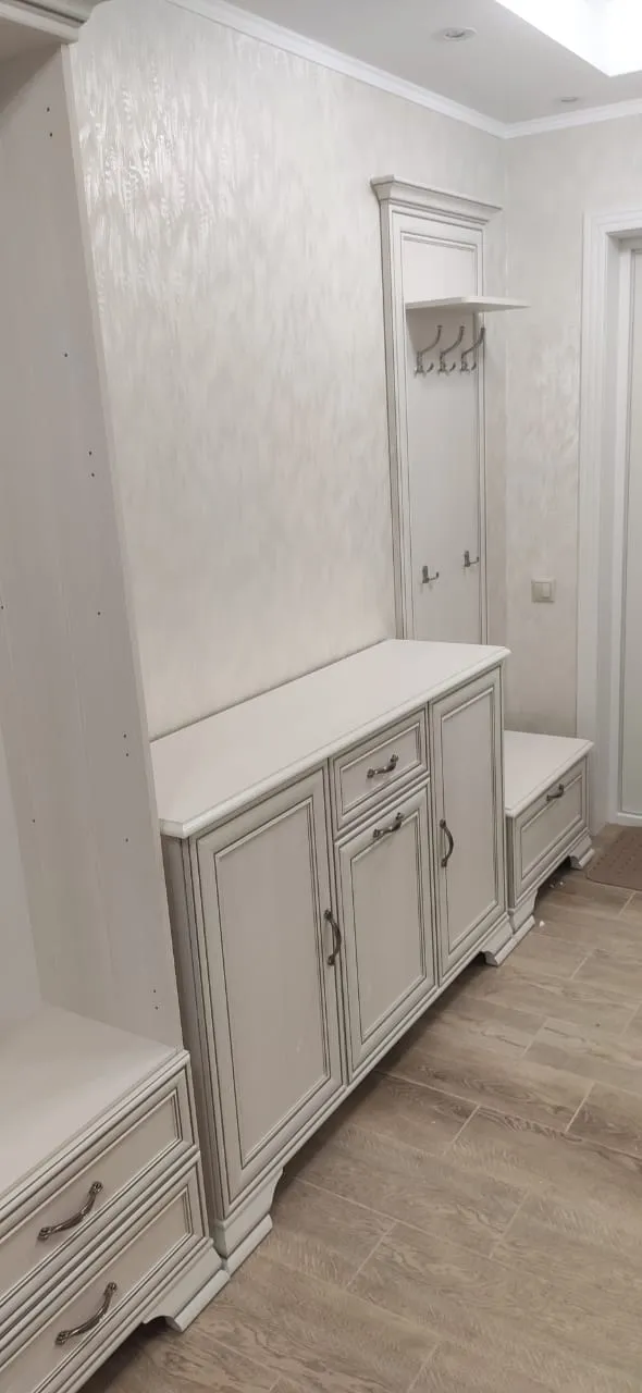 Прихожая просто замечательная. Мебель так аккуратно смотрится, для небольшой квартирки – это идеальный вариант. Очень удачный светлый цвет и за счет ножек тумба и обувница кажутся более аккуратными и компактными.