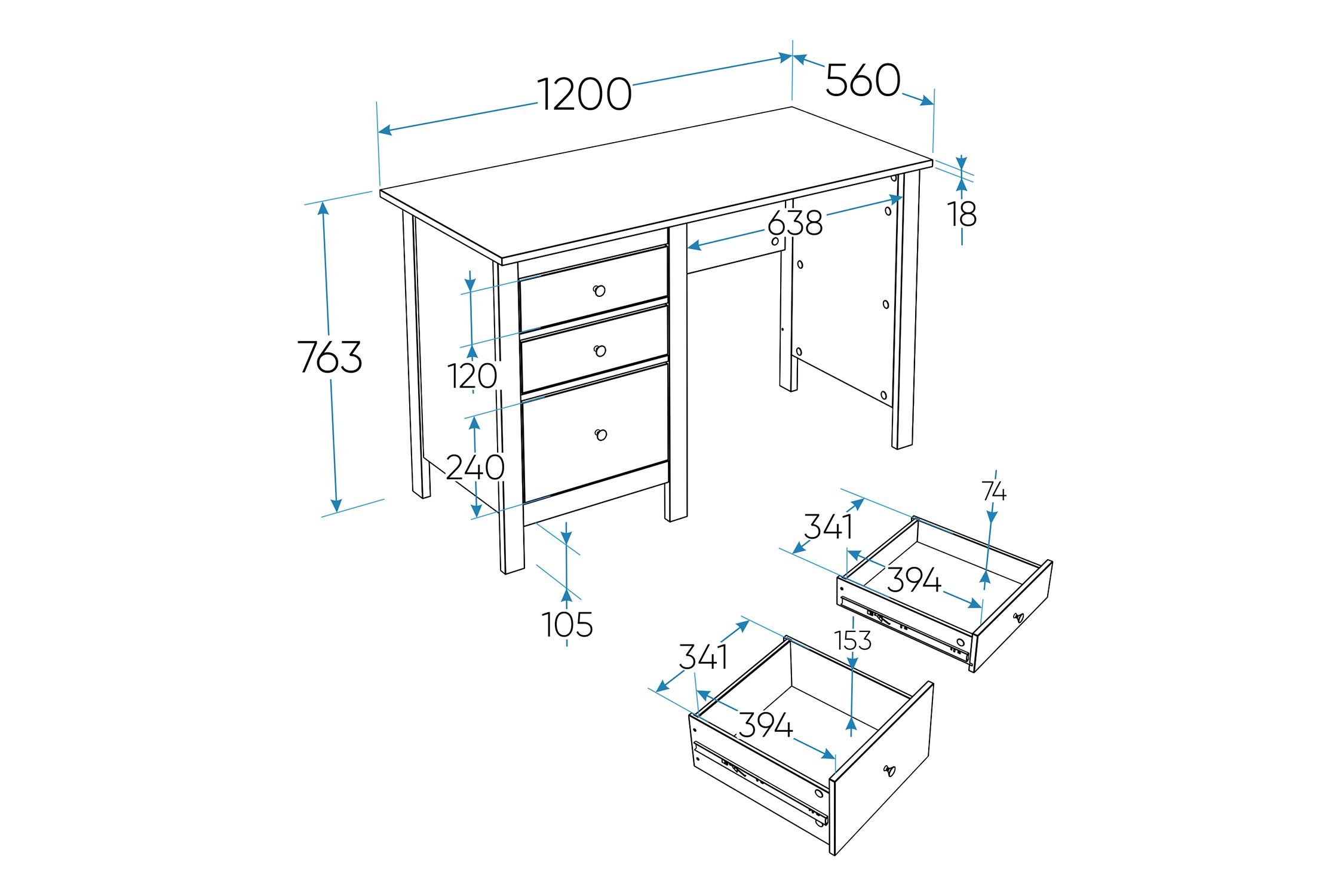 Стол письменный Сага, 120х56, кашемир/ясень