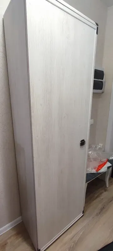 Одностворчатый шкаф Indiana с глухой распашной дверцей имеет интересный дизайн фасада. По его светлой поверхности проходят темные узоры годовых колец, по периметру установлена кромка из МДФ и есть декоративная ручка-подкова. Сама конструкция изготовлена из прочного и стойкого к износу материала ЛДСП. Эта модель с простым дизайном не требует специального ухода и дополнительных вложений в обслуживание.