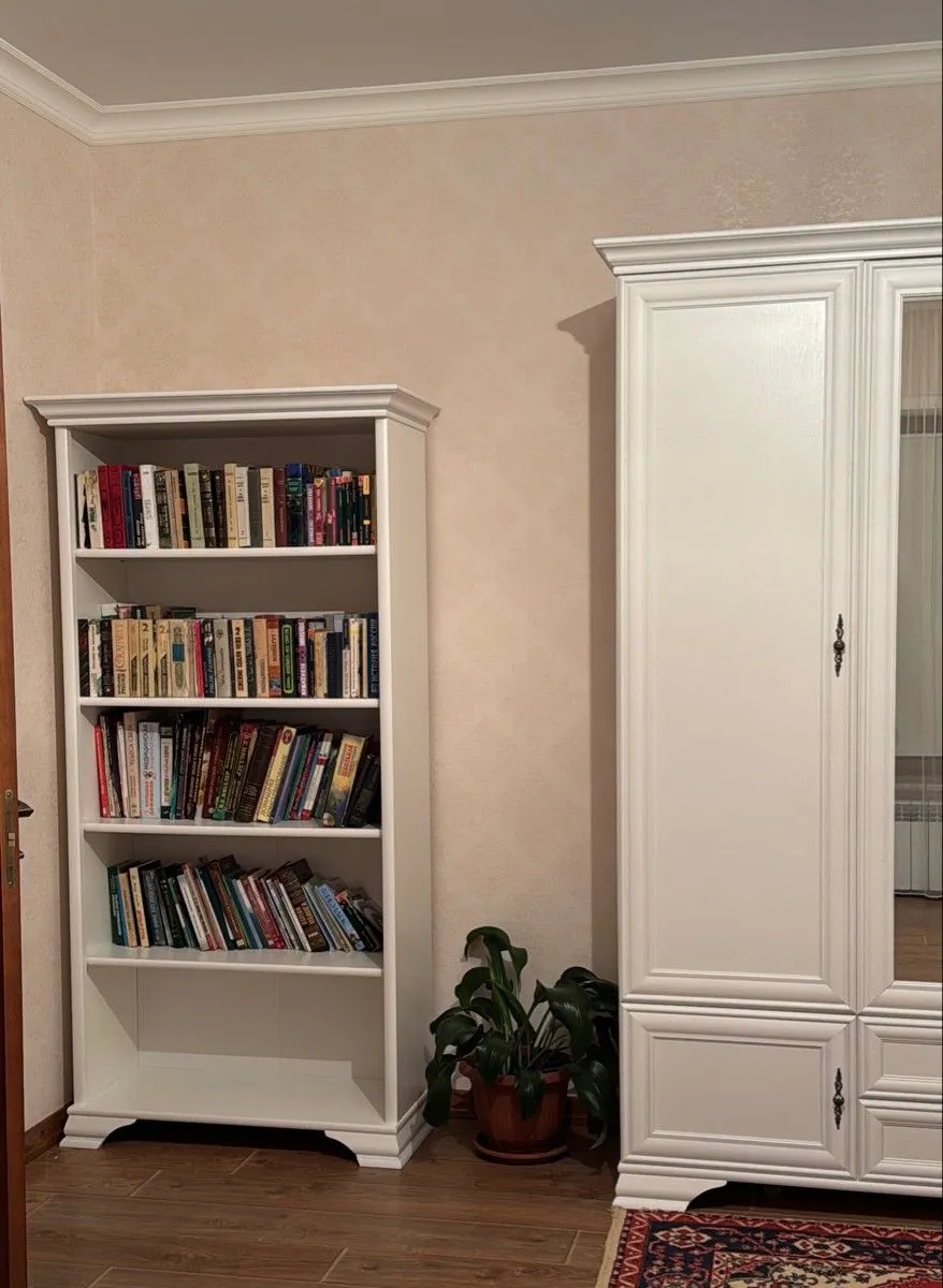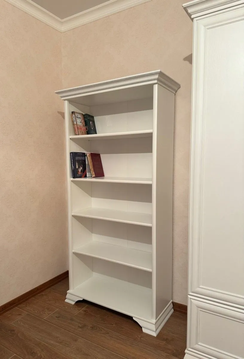 Белый стеллаж Kentaki – это открытая конструкция с комфортными размерами. Ее высота составляет 197,5 см, ширина 99,5 см и глубина 44 см. Стеллажный шкаф состоит из четырех отделений (полок), широких резных опор и фигурного карниза. В таком незатейливом виде он украсит интерьер кабинета, домашней библиотеки, детской и гостевой комнаты. Белый цвет фасадов, дополненный серебристой патиной, гармонично смотрится в обстановке классического и современного стиля.