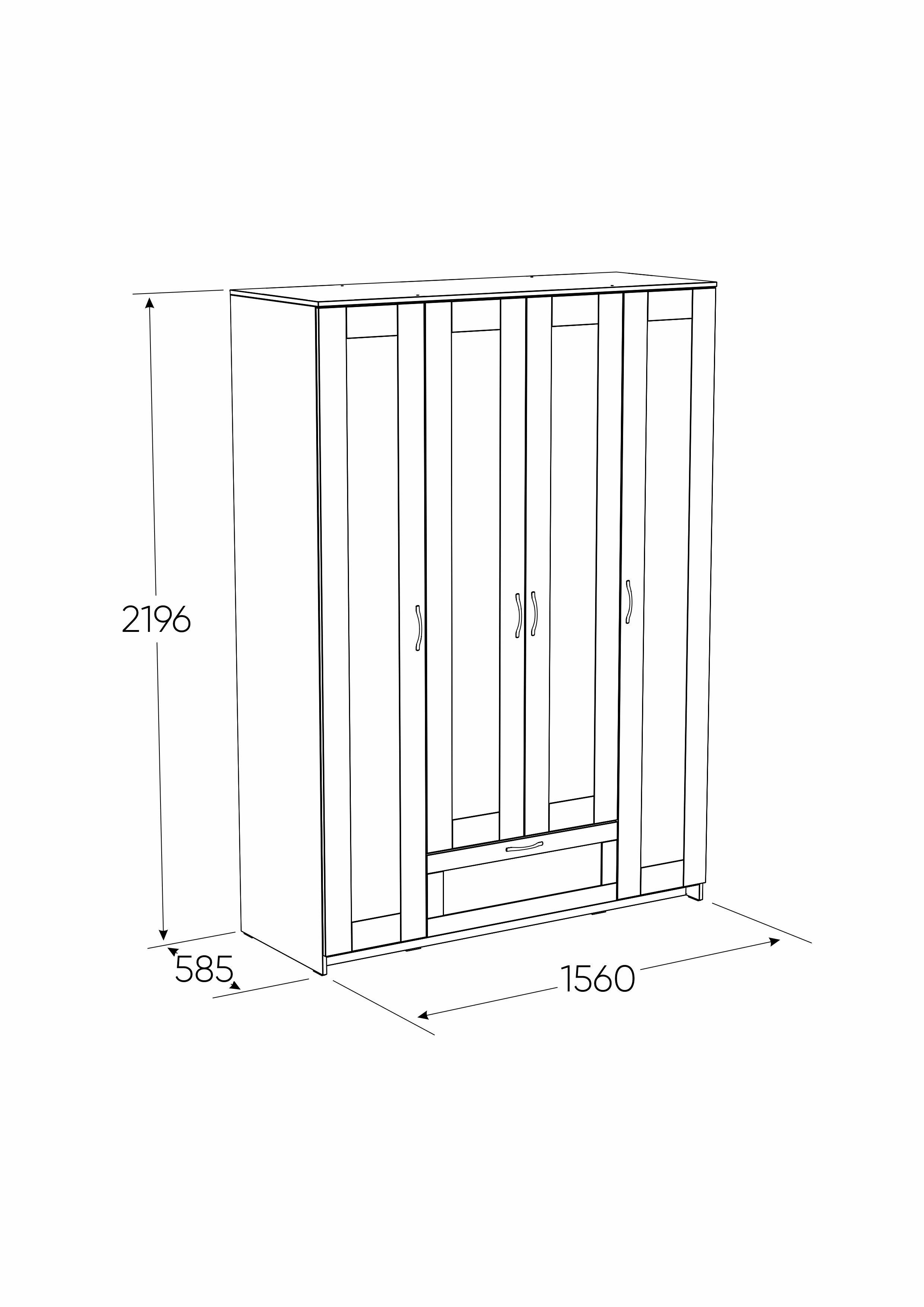 Шкаф Сириус, 4 двери и 1 ящик, 156х59х220 см, белый