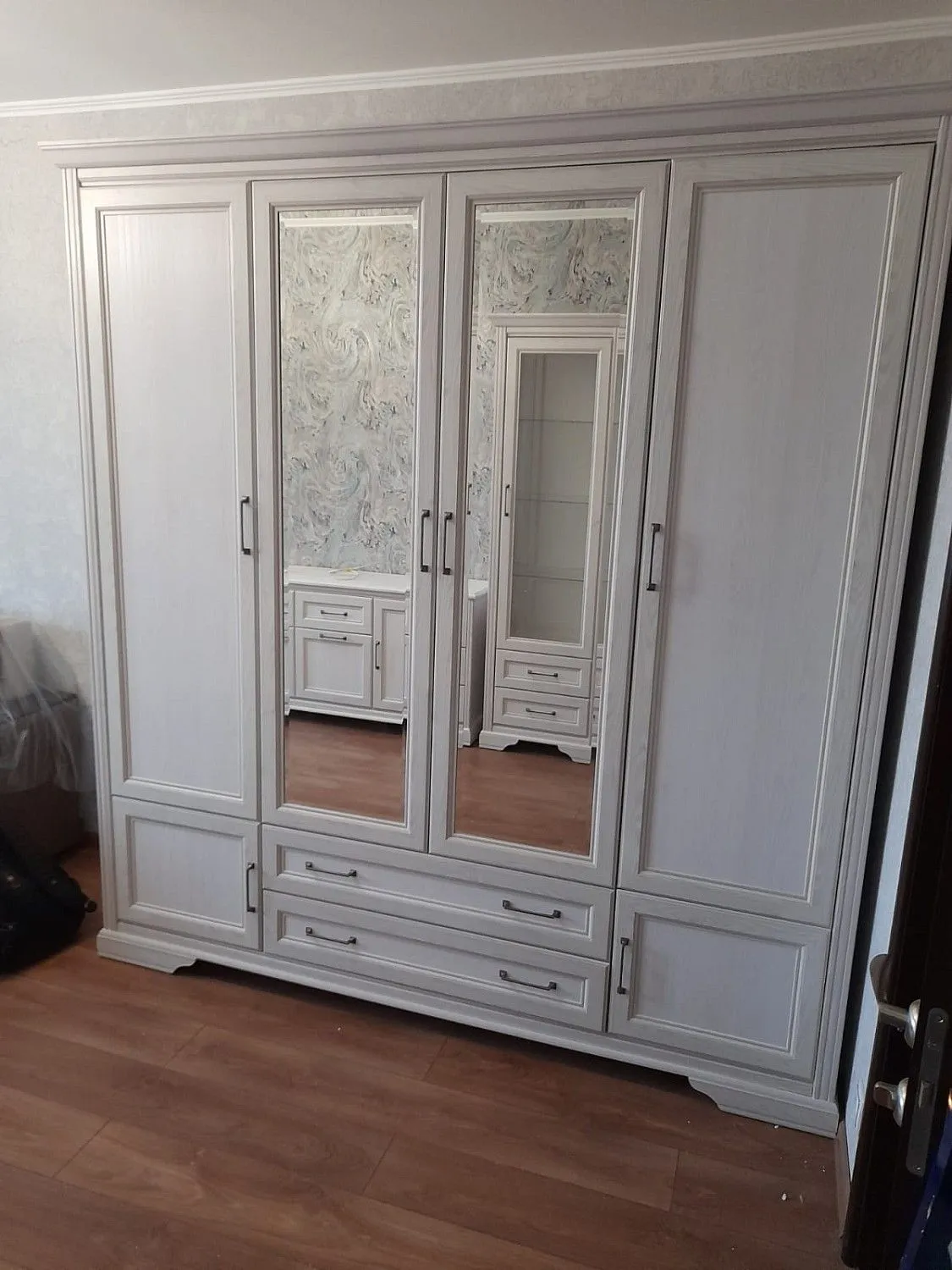 Спасибо магазину за быструю доставку и хороший сервис. Понравилась услуга сборки – мастер вежливый, работает быстро. Шкаф хоть и большой, но он потратил на сборку совсем немного времени. Собрал качественно, выставил на неровном полу.
