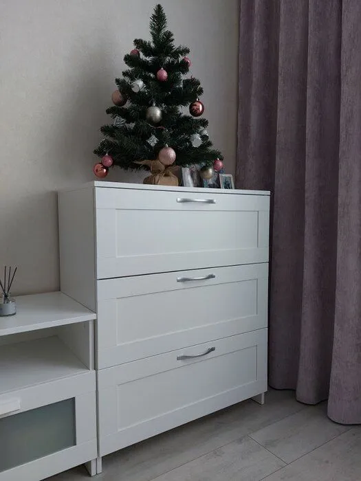 Сделано все красиво и ровно, собирается без проблем, все детали и болтики ровно в том количестве, которое нужно. Остались только гвозди после сборки. Упаковано все тоже отлично, в коробках все пустоты заполнены картоном. От комода в сборке ощущение на вид - красиво-богато. А при использовании, тактильно он очень легкий, на ручках металл очень тонкий, а ящики в конце хода как бы входят более плотно, поэтому есть предположение что ручки могут отвалиться при не очень аккуратном использовании. В общем такой он весь нежный и хрупкий, подойдёт для аккуратных людей, которые любят красивый вид. От материала запах на всю комнату, который видимо со временем выветрится. Хорошая мебель, но заметно что все очень экономно.