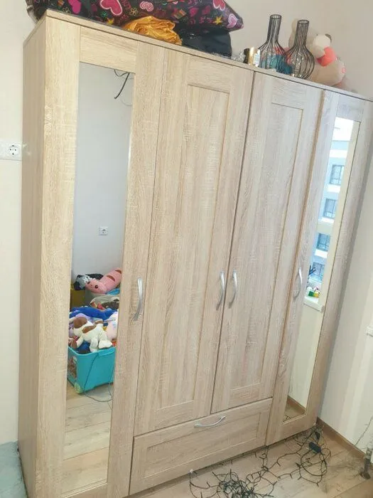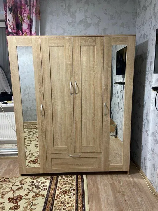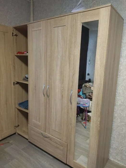 Шкаф отличного качества!. Доставка сама отлично! Бесплатный подъем в квартиру! Кстати ,обратите внимание,что как правило и подъем практически везде платный,а тут бесплатно! Очень сочетается с ламинатом на полу и обои на стене! Сама не ожидала! Брака никакого нет! Все в целости и сохранности! Вместителен! Протирается отлично! Следов на шкафу от микрофибры влажной нет! Честно в восторге! Хочу добавит ,что все таки надо вызывать сборщика,потому что не легко самим. Лишних и недостающих деталей нет! Цена для такого шкафа отличная! Переживала ,что придет с каким нибудь дефектом ,но нет, всё отлично! Спасибо продавцу за цену и производителю за качество! Чуть позже ещё закажу такой ( только уже себе) Этот был для дочери в новую квартиру! Всем удачи!