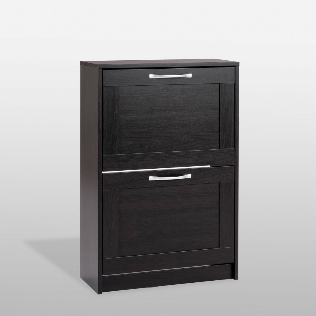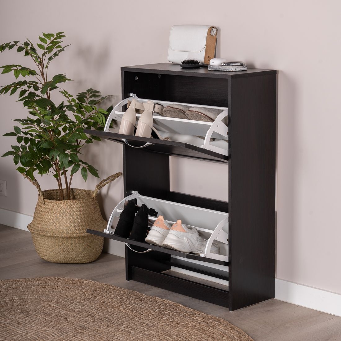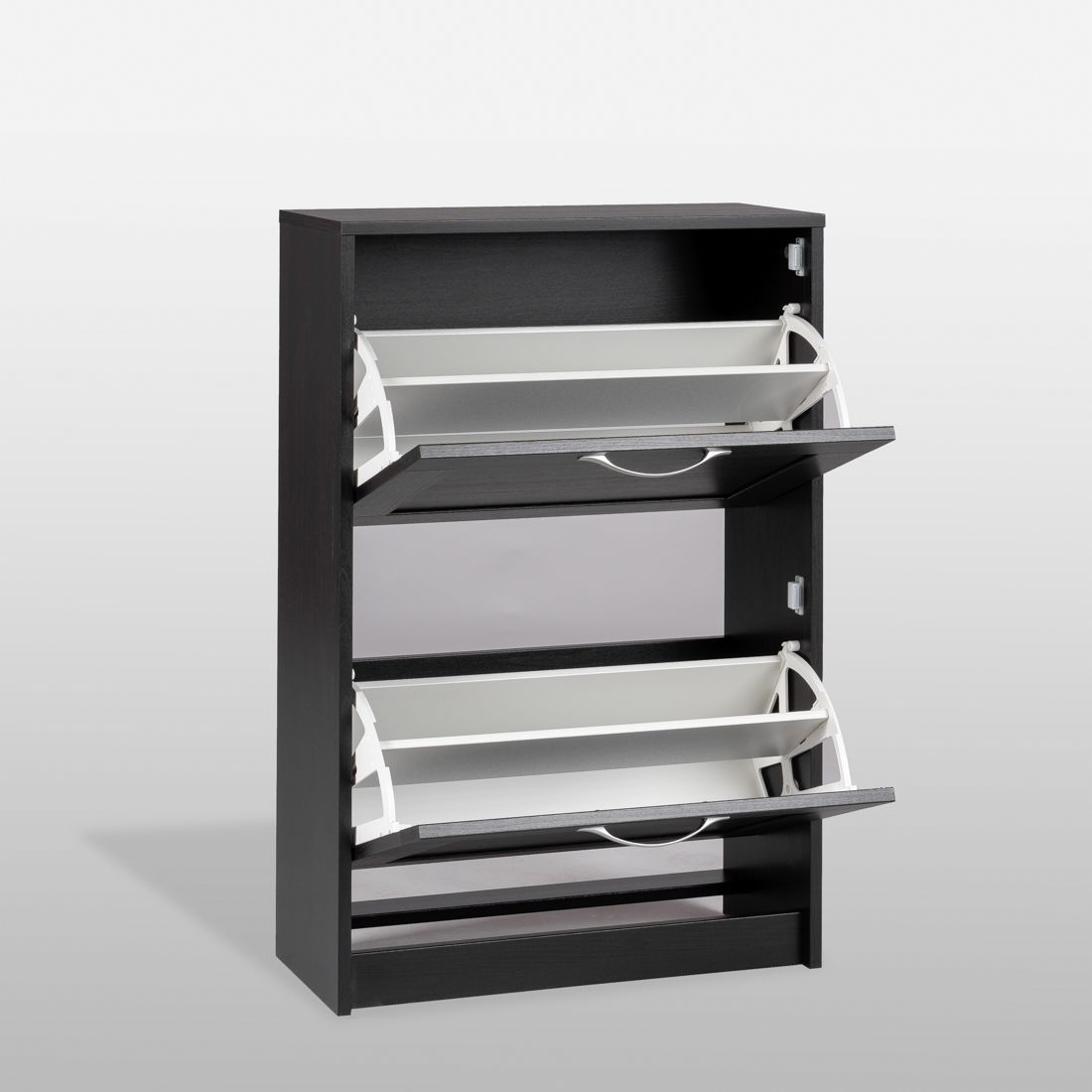 Обувница Сириус с 2 откидными ящиками, 60 х 25 х 89 см, черно-коричневая, ЛДСП, дуб венге