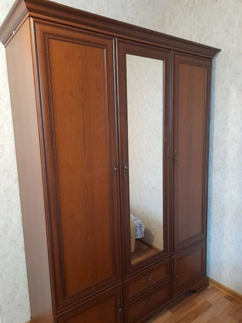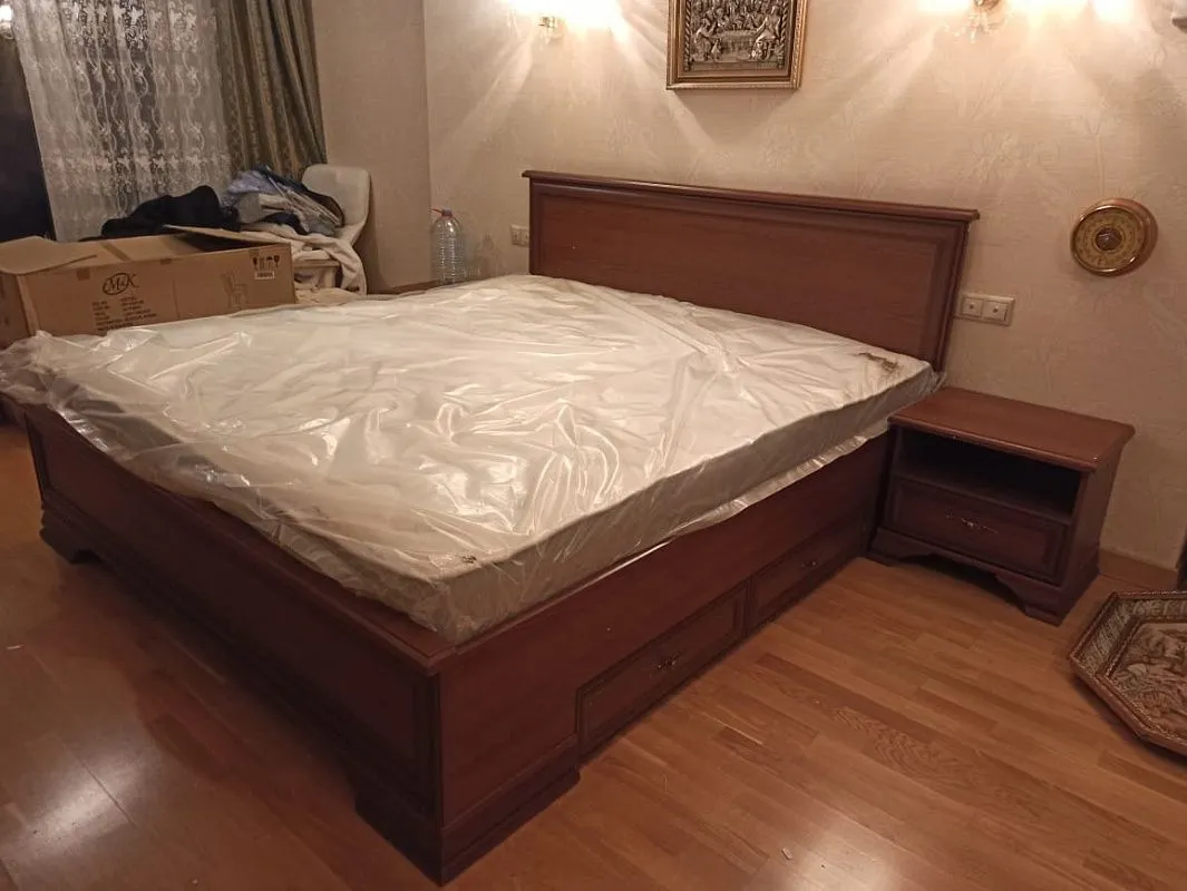Модульную мебель заказывали для спальни в нашей квартире. Комната не слишком большая, отделка стен светлая. Комплект подошел идеально. Кровать (заказывали вместе с матрасом) удобная, очень широкая. Понравилось, что тут массивные ножки. Шкаф очень вместительный, вещи все свои уместили и при этом осталось свободное место. В этом комплекте очень удобные прикроватные тумбочки. Покупкой однозначно довольны! Спальня стала очень уютной. А цвет просто изумительный.