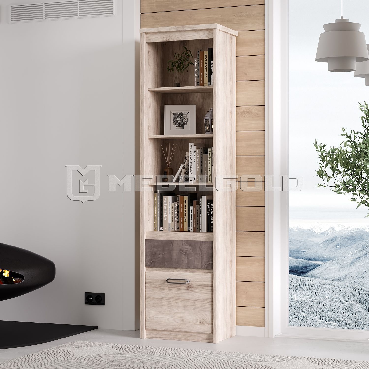 Открытый одностворчатый шкаф JAZZ 1D1S – это модель шириной 56 и глубиной 40 см. Это вместительная конструкция, на полках которой можно хранить книги, декор и любые дизайнерские вещи. Шкаф-пенал имеет два варианта открывания: с помощью ручек и фрезеровки на фасаде. Его корпус и фасады изготовлены из ЛДСП и закаленного стекла.