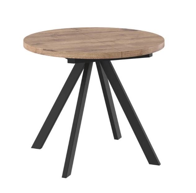 Стол круглый раздвижной TRIO-90 (ДУБ ВЕЛИНГТОН/ЧЕРНЫЙ) 90/125