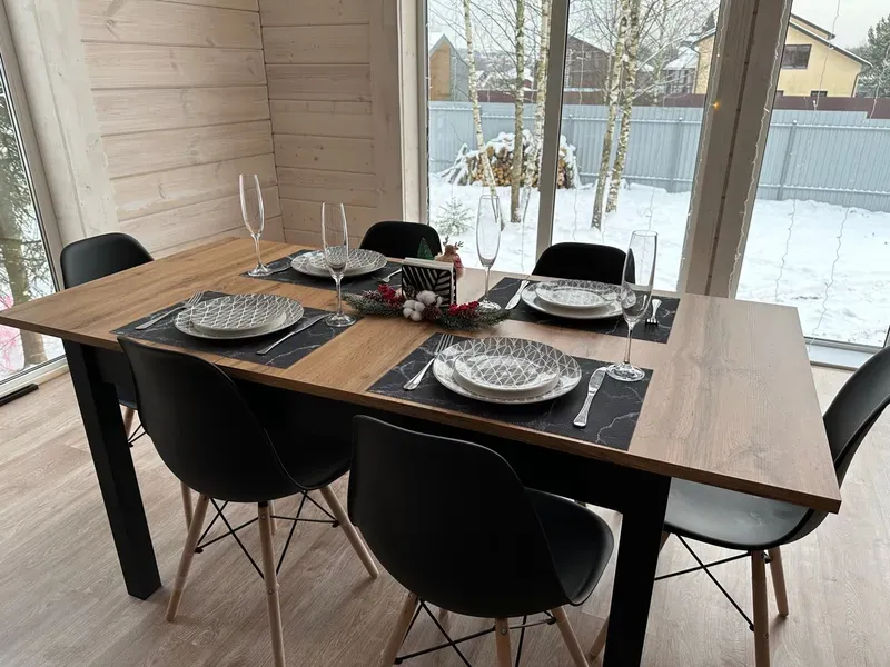 Эта модель не имеет четкой принадлежности к обеденным столам, поэтому может быть использована как на кухне, так и в гостиной. Его ширина составляет 130 см, но дополнительная вставка позволяет увеличивать столешницу до 170 см. При глубине 80 см за ним одновременно уместится до 8 человек.