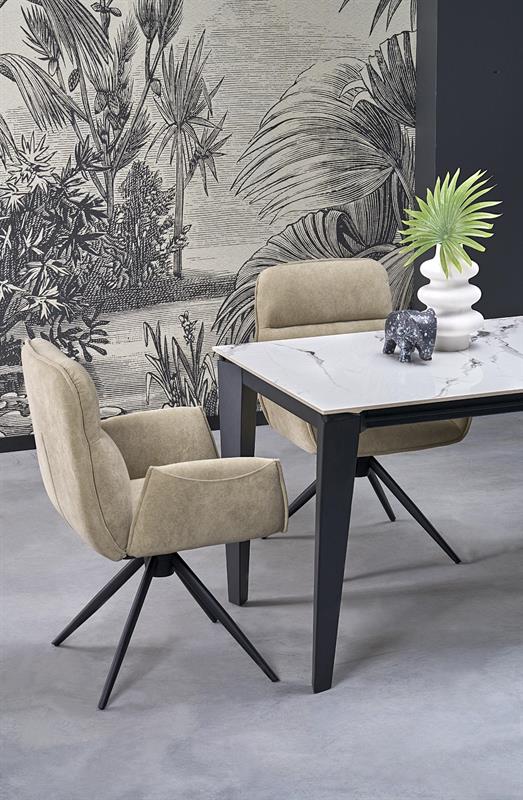Стол обеденный Halmar FELIX раскладной (белый мрамор/черный)