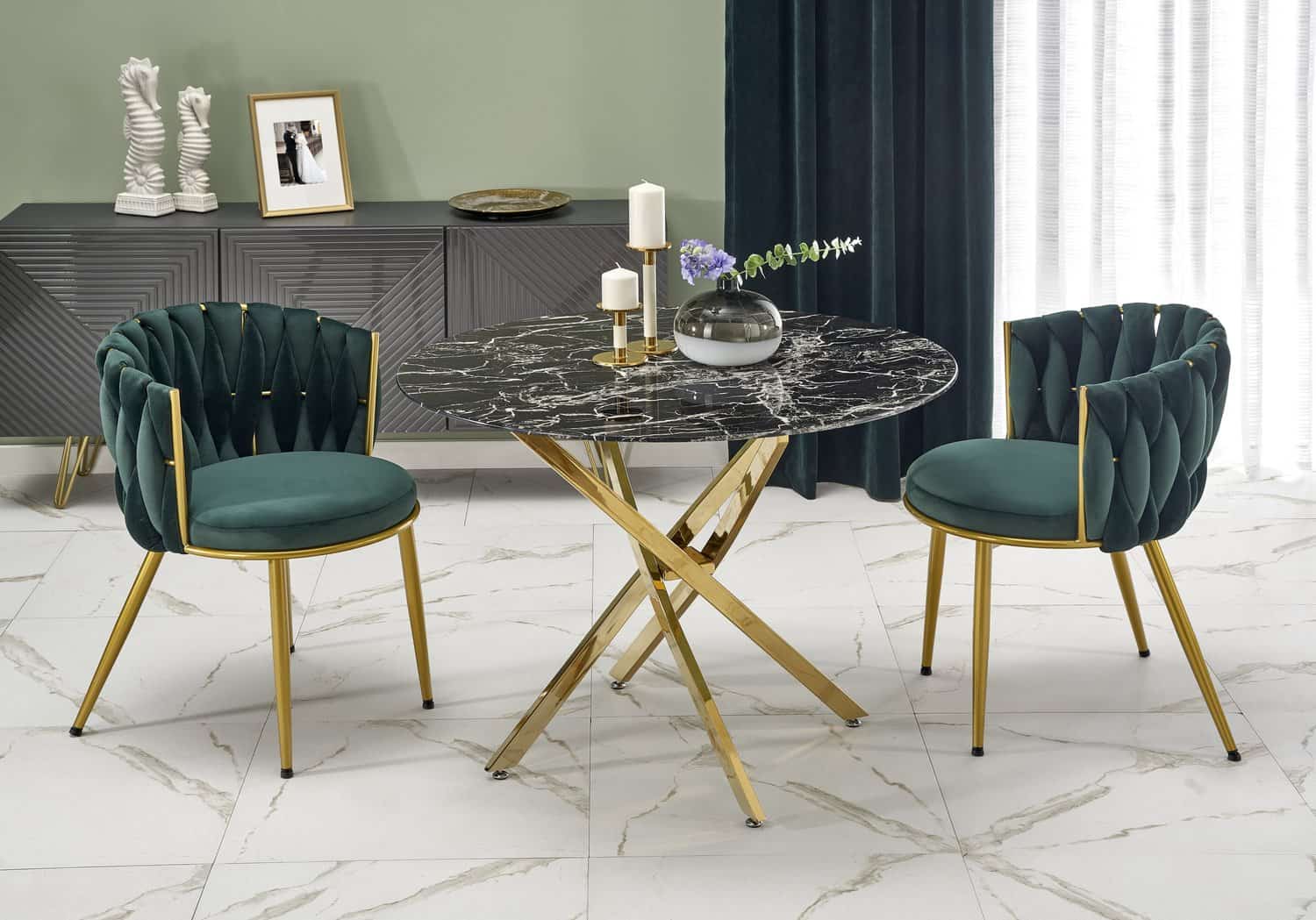 Стол обеденный Halmar RAYMOND 2 (черный мрамор/золотой)