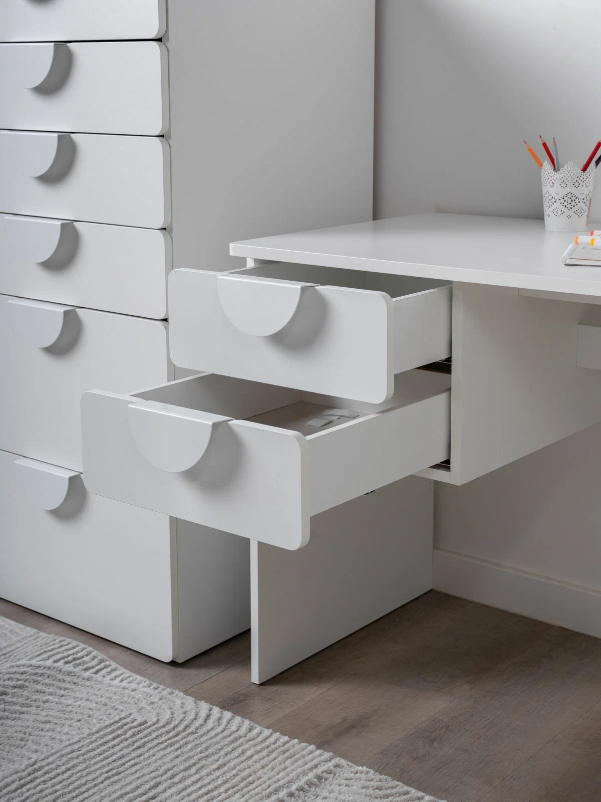 НАДЕЖНОСТЬ И ВЫСОКОЕ КАЧЕСТВО: ДСП высочайшего класса безопасности. Суперстойкое пигментное покрытие: устойчиво к царапинам, влаге и истиранию. Легко очищается от следов фломастеров и красок. Основные характеристики: Узнаваемый дизайн – вдохновлен популярной серией SMASTAD от IKEA. Три цвета фасадов для любого дизайна и настроения. В серии ПИКСИ скамья, кровать, комоды, шкафы и стеллажи.