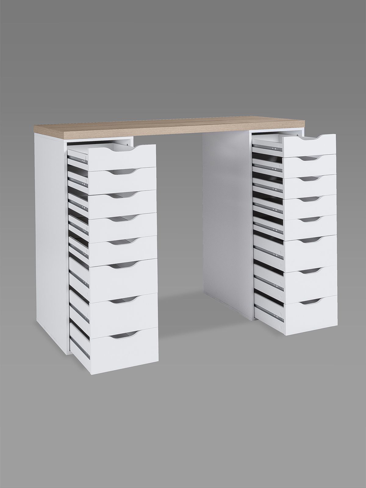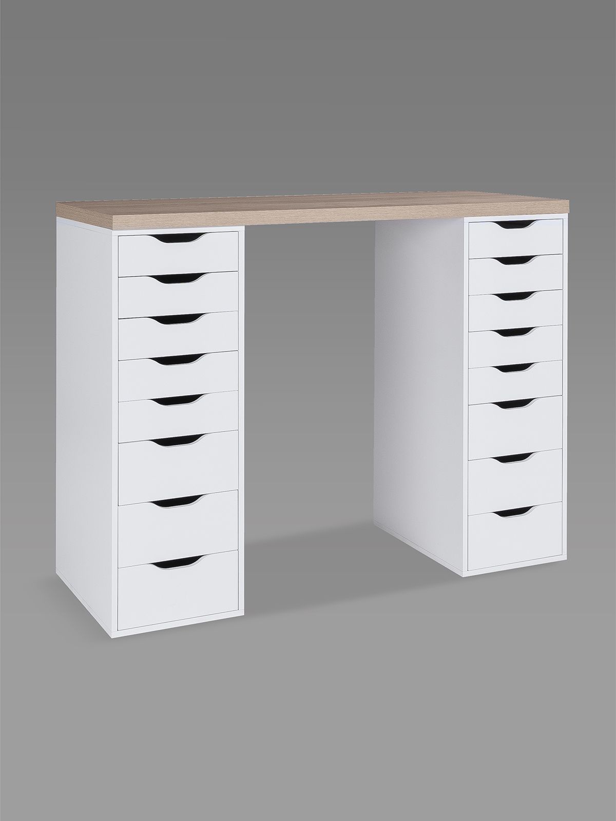 Стол письменный Ингар, 16 ящиков, 140х106х55 см, дуб беленый
