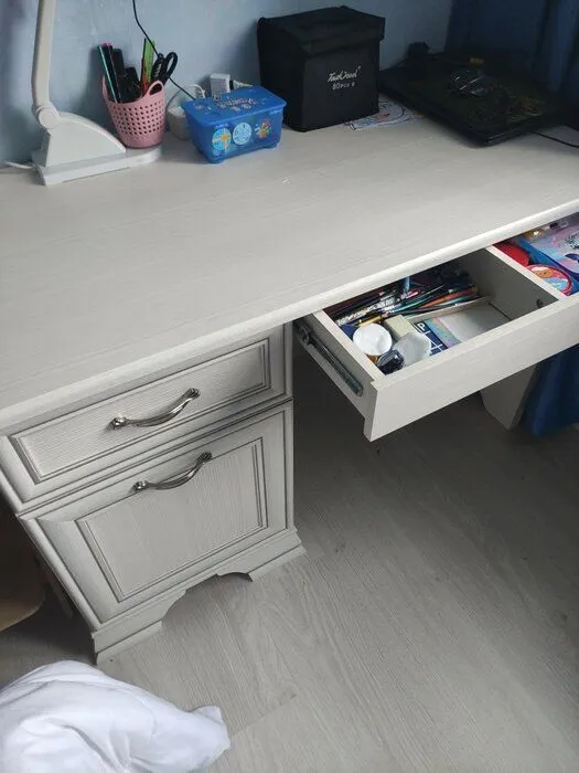 Для удобства пользования производитель оснастил письменный стол Tiffany 120 польской фурнитурой GTV и GAMET. В качестве она не уступает аналогичным австрийским и немецким петлям и роликовым направляющим. Такое решение актуально для комнат с небольшой площадью, а также семей, где проживают дети школьного и студенческого возраста. А также письменный стол Tiffany 120 станет приоритетным вариантом для лиц, работающих дома. По дизайну он отлично сочетается с полками и тумбами из коллекции «Тиффани».