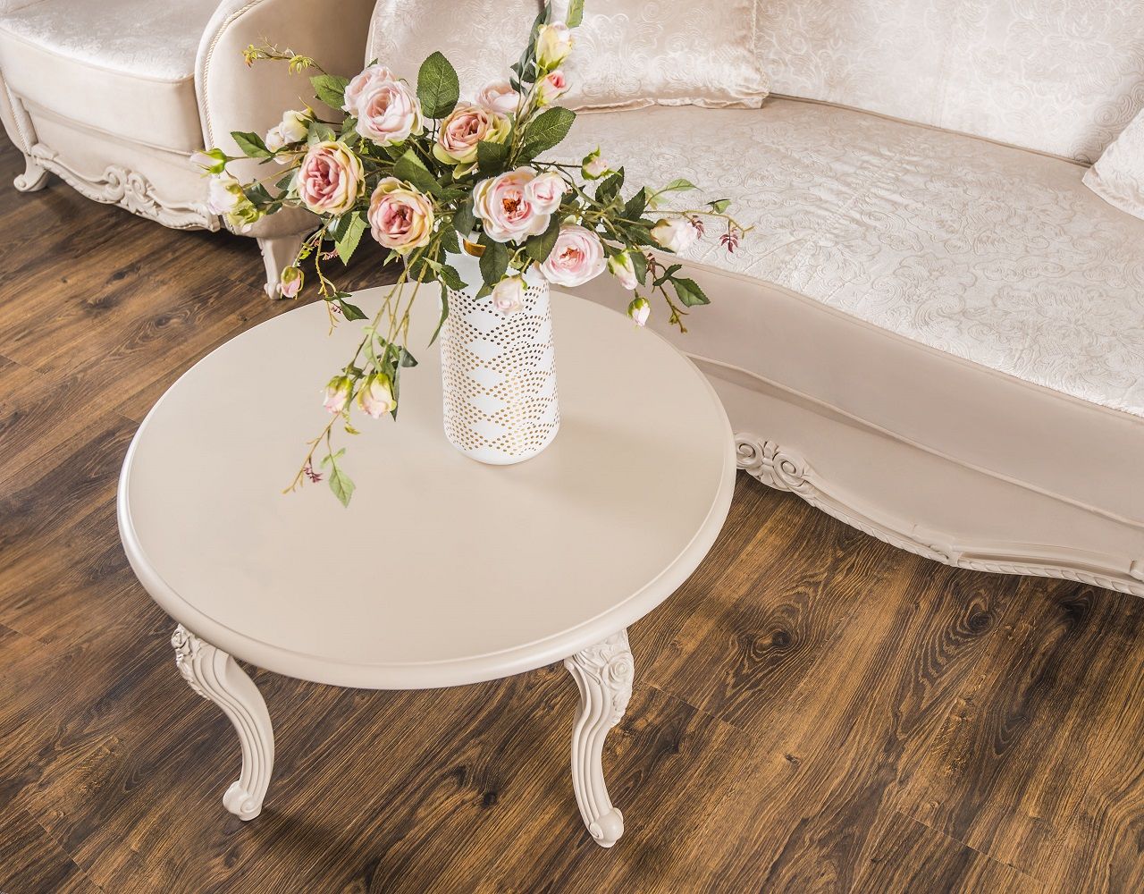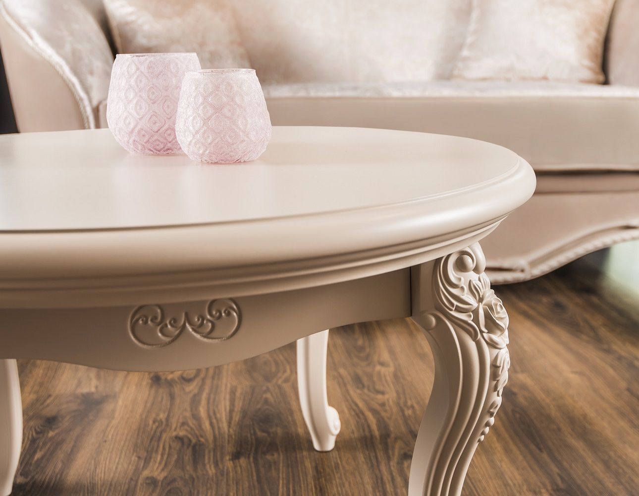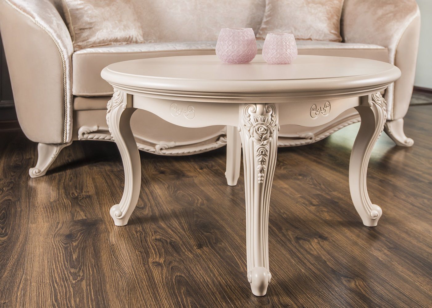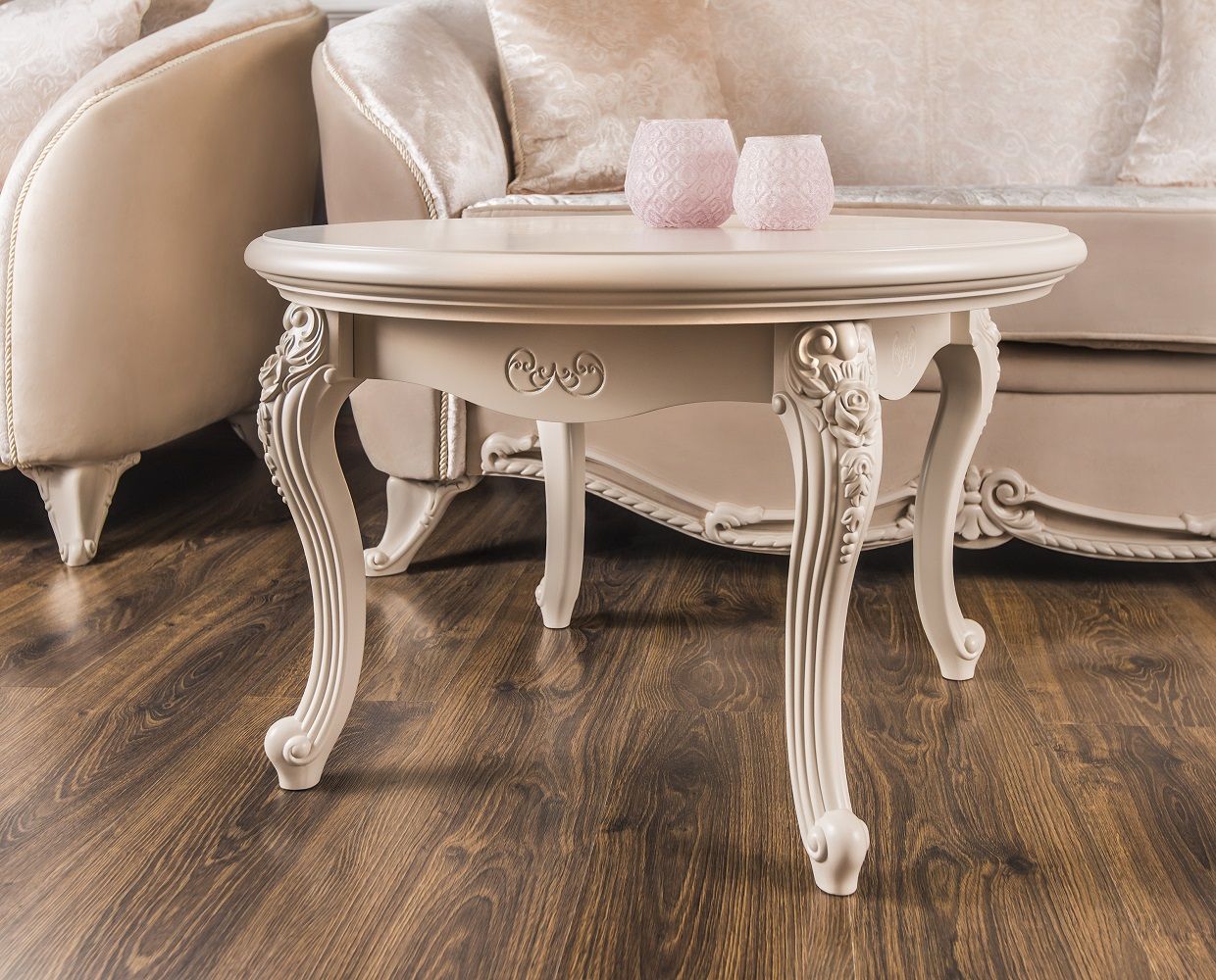 МОККО — это столовая группа с круглым столом и мягкими стульями на античных ножках.