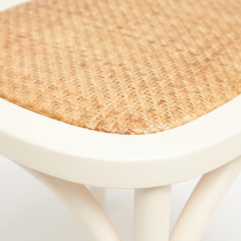 Легкий и элегантный дизайн, простые линии и естественные цвета классического венского стула Secret De Maison CROSS, выполненного в стиле гениального творения Михаэля Тонета, украсят собой любую домашнюю обстановку. Сочетание плетеного сиденья из натурального ротанга и каркаса из массива березы, покрашенного в белый цвет, придает стулу особенную красоту и оригинальность. Эргономичная спинка и удобное сиденье позволят комфортно сидеть в течение длительного времени. Конструкция изделия разработана с учетом равномерного распределения нагрузки. Натуральный ротанг и массив березы – прочные и долговечные материалы, не требующие специального ухода, способные выдерживать большую нагрузку. Стул будет радовать вас своим первоначальным видом долгие годы. Модель идеально сочетается с мебелью из коллекции THONET, поставляется в собранном виде.