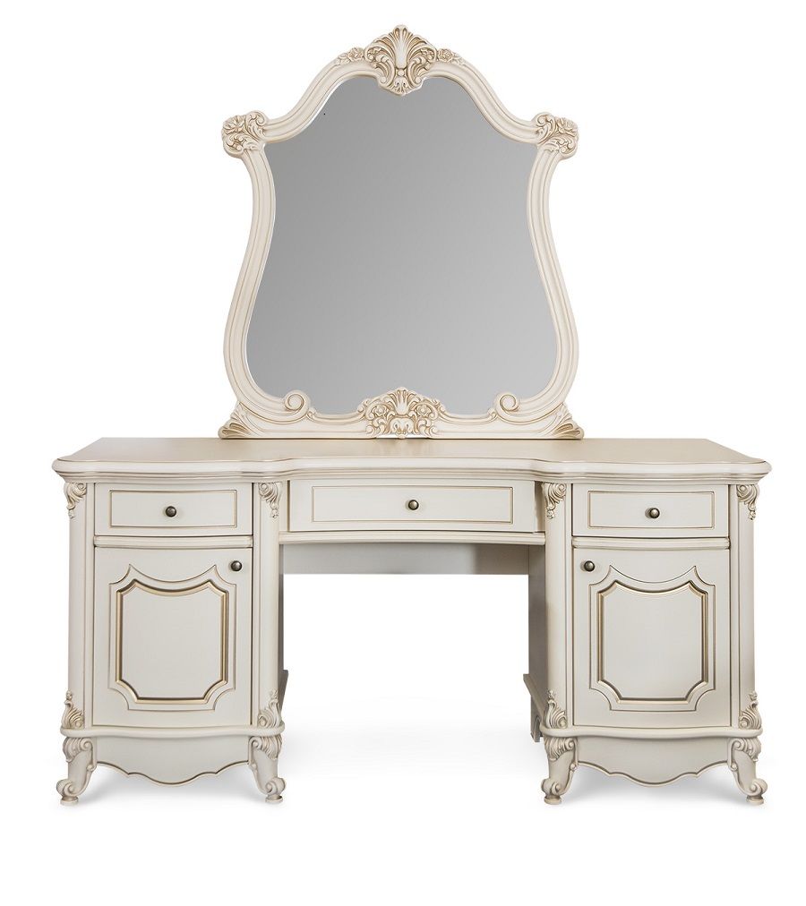 Роскошный и по-королевски неординарный туалетный столик «Мона Лиза». Он создан, чтобы дарить уют и ощущать себя царственной особой. Это мечта, которая легко станет явью и превратит заурядные интерьеры в шикарные хоромы. Такая мебель мысленно возвратит нас во Францию и Версаль, в пышные покои Людовика XIV и времена будуаров. Она подойдет всем, кто хочет ощущать праздник и жить, поддерживая в своем доме атмосферу легкости и итальянского очарования.