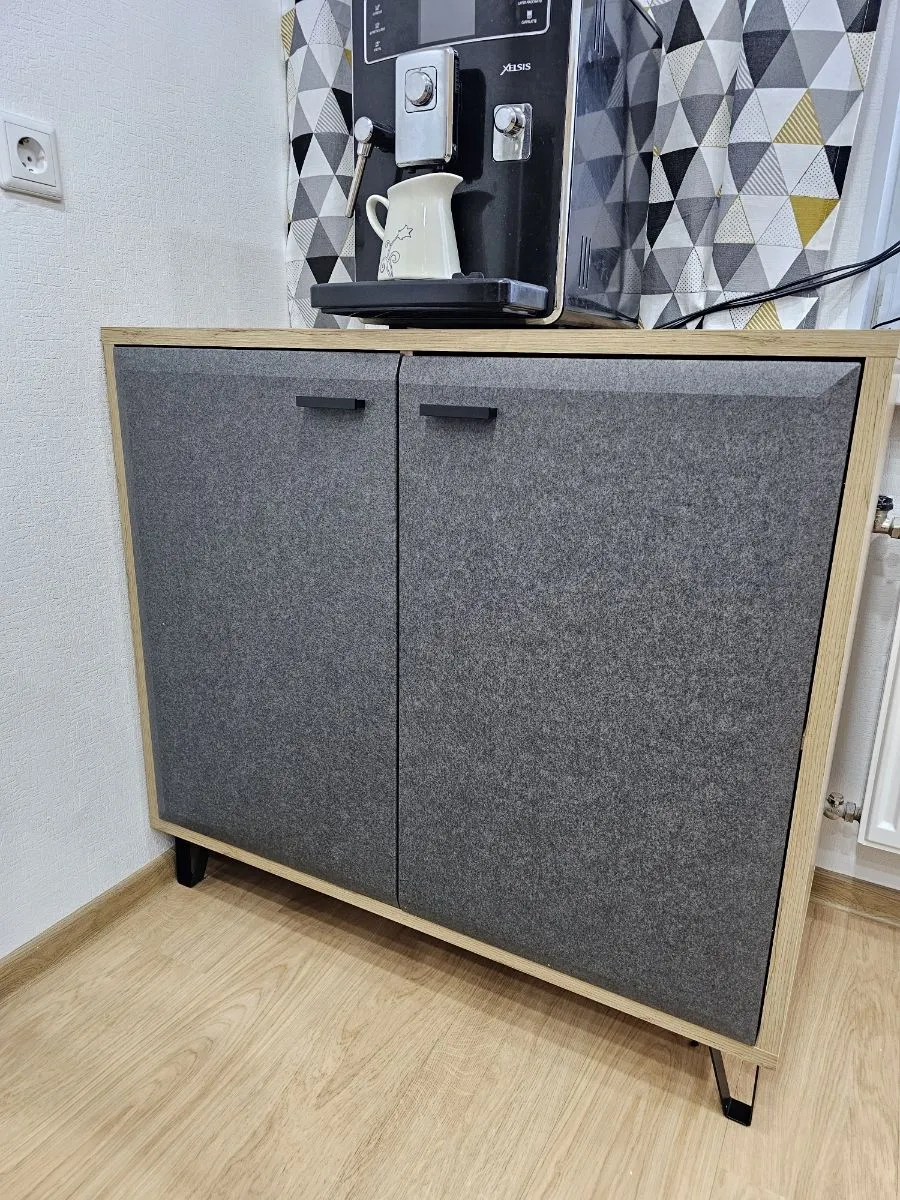 Тумба Grace представлена универсальной моделью с двумя четырьмя распашными дверцами одинакового размера. Это визуально легкая и стильная конструкция на металлических ножках имеет высоту 89 см, ширину 97 см и глубину 41 см. Благодаря таким размерам, она компактно разместится в небольшой комнате и даже заменит небольшой шкаф.