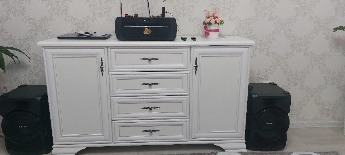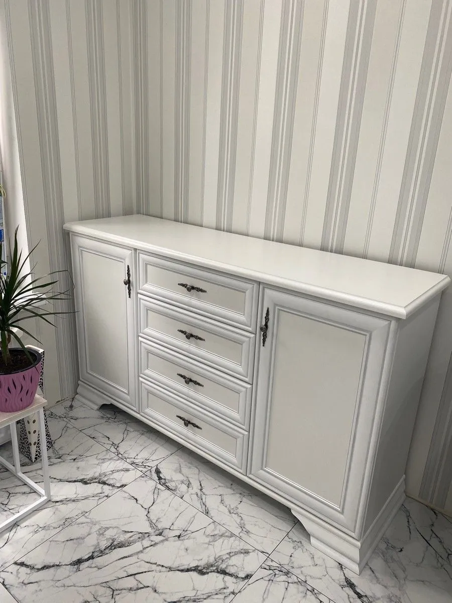 Белая тумба производства Белоруссии имеет просторную рабочую поверхность шириной 154,5 см. Этого размера достаточно, чтобы установить ТВ и аудиотехнику. При высоте 90 см и глубине 44,5 см она превращается в полноценную систему хранения и гармонично вписывается в обстановку спальни, гостиной, прихожей или кабинета.