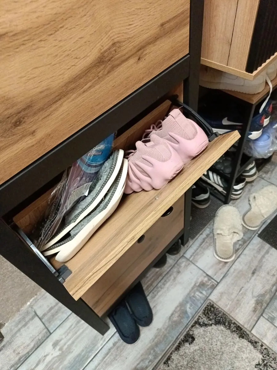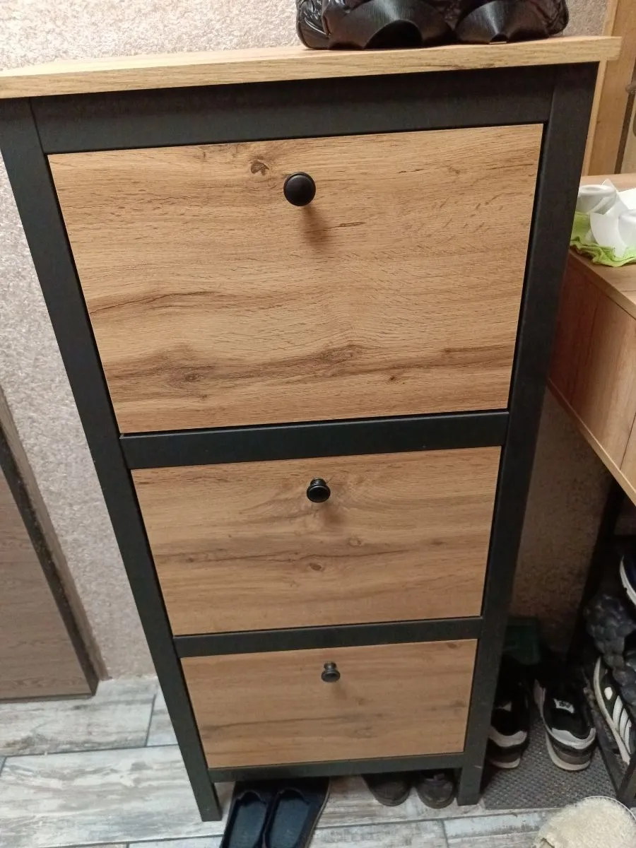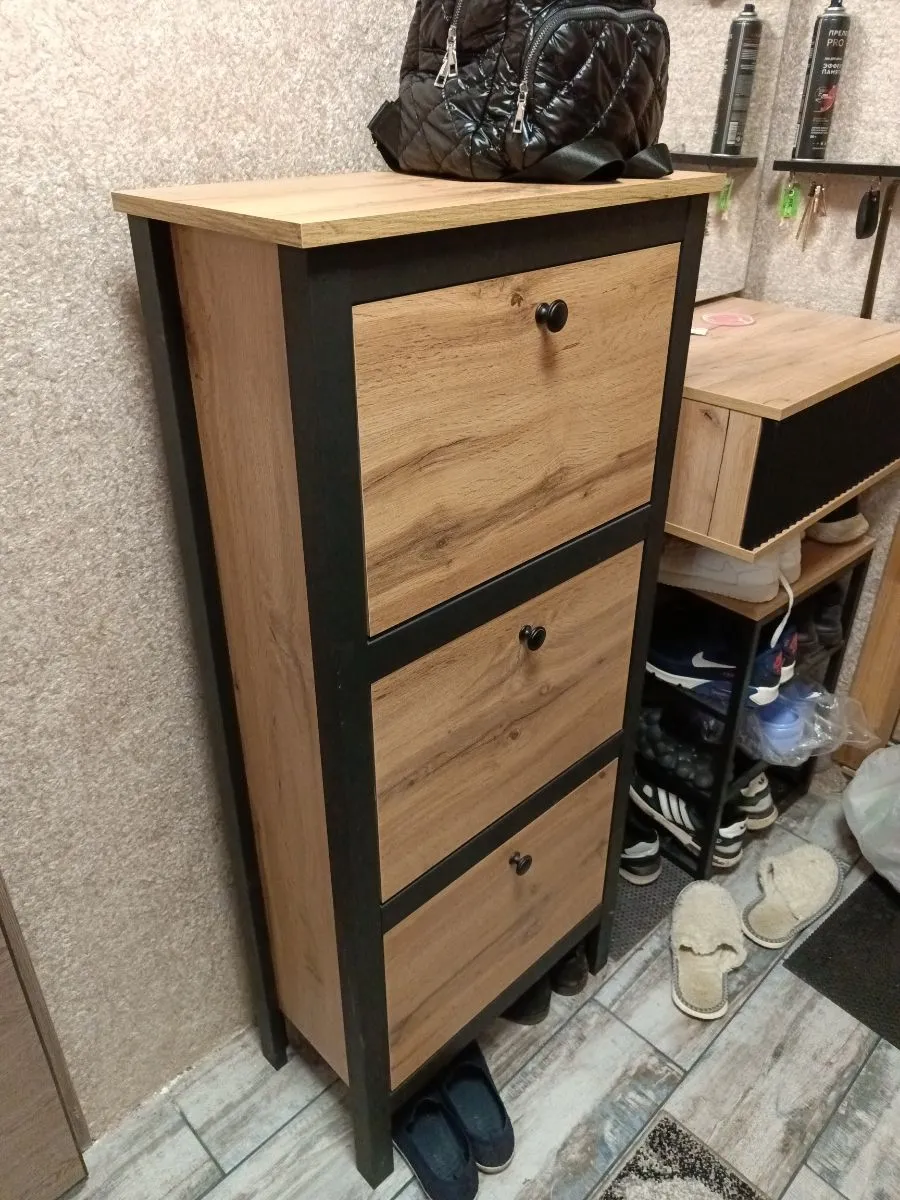 Оптимизировать пространство прихожей и сделать его эффективнее можно с помощью предметов интерьера. Тумба для обуви Loft позволит достичь гармоничного баланса между порядком и эстетикой. Эта высокая и узкая обувница имеет 3 отделения с откидными дверцами. Модель закрытая и герметичная, отличается лаконичным внешним видом.